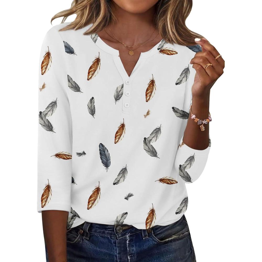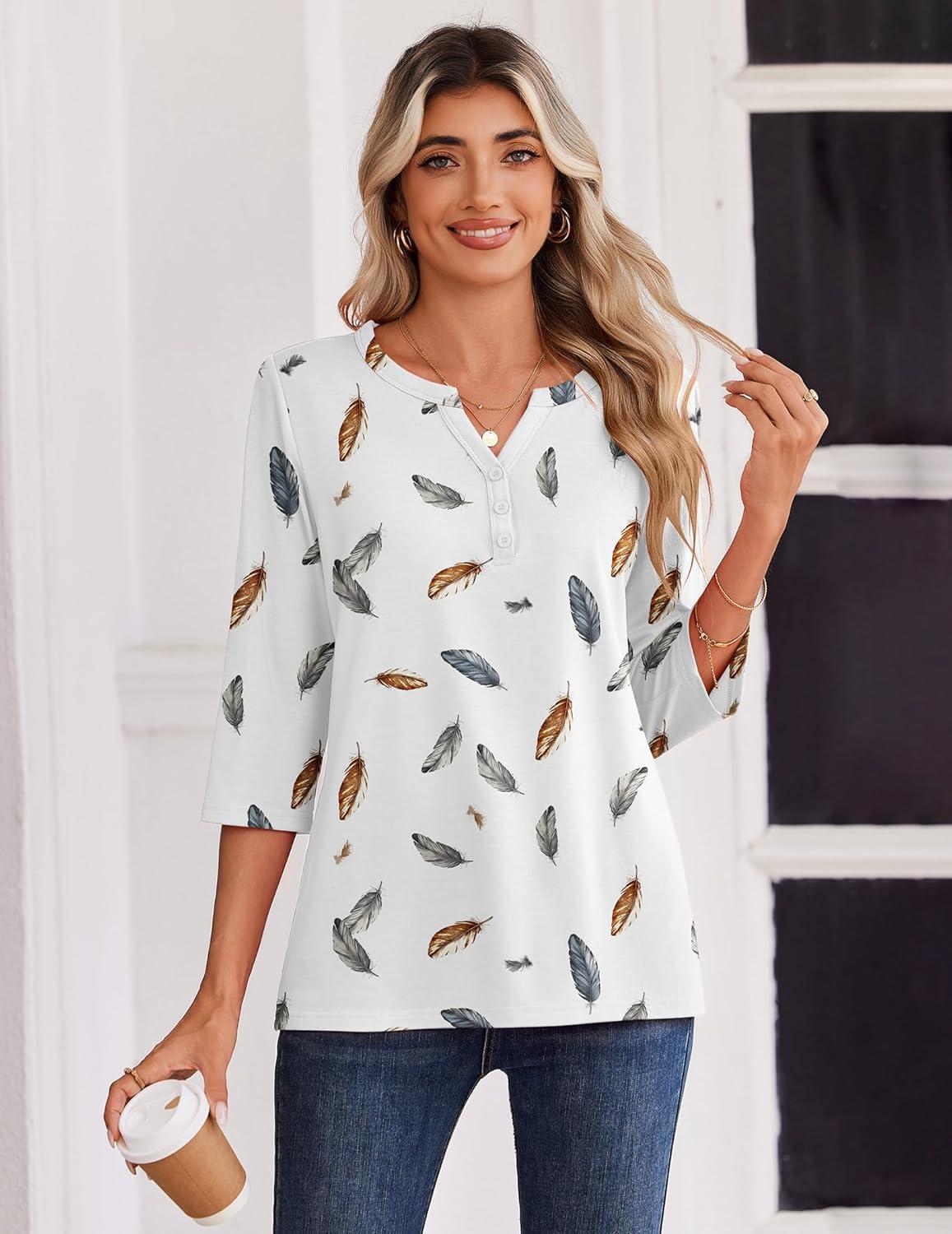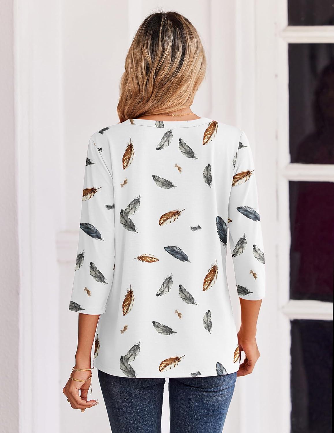Zeagoo 3/4 Length Sleeve Womens Tops Casual Dressy Summer Blouses Buisness Work Spring Tee Shirts(Print 170)