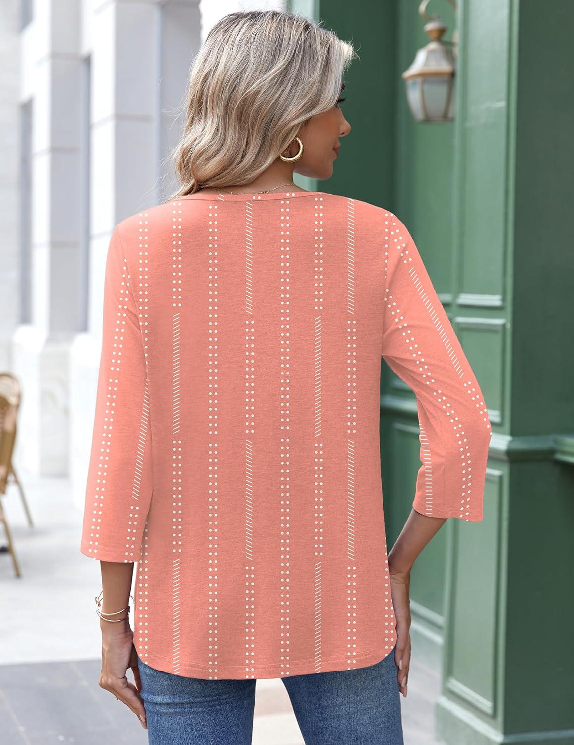 Zeagoo 3/4 Length Sleeve Womens Tops Round Neck Casual Summer Tunic Tops Basic Tees Blouses Dressy T-Shirts Pleated Shirts(Pink)