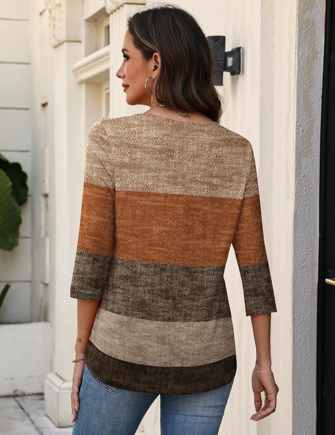 Zeagoo 3/4 Length Sleeve Womens Tops V Neck Shirt Dressy Casual Blouse Basic Tshirts 2025 Fashion Clothing S-2XL(Jb218)