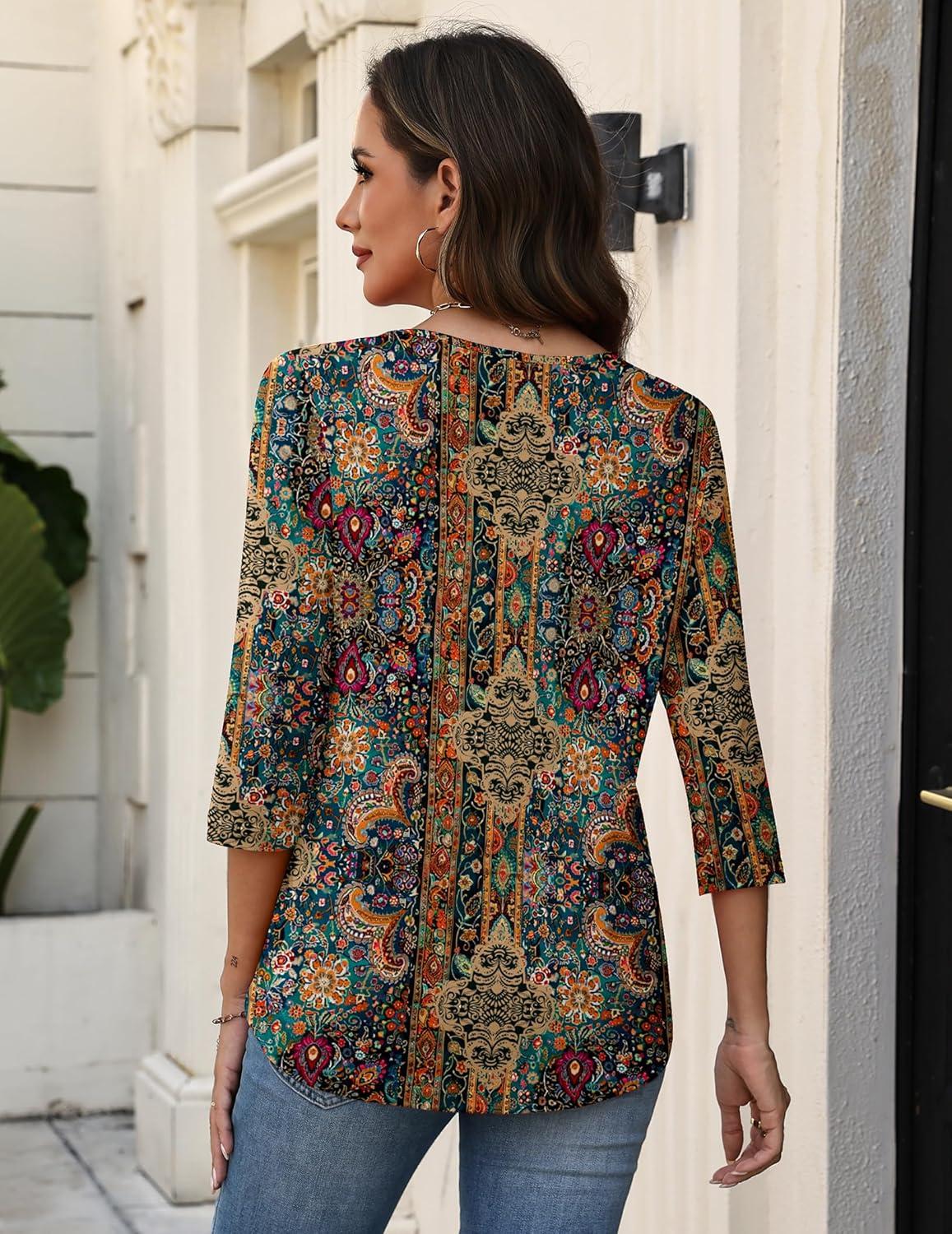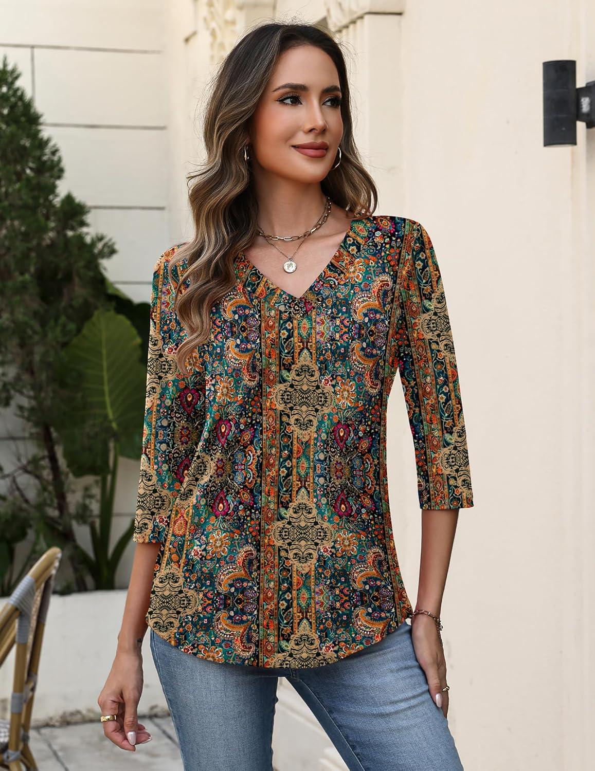Zeagoo 3/4 Length Sleeve Womens Tops V Neck Shirt Dressy Casual Blouse Basic Tshirts 2025 Fashion Clothing S-2XL(Mz721)