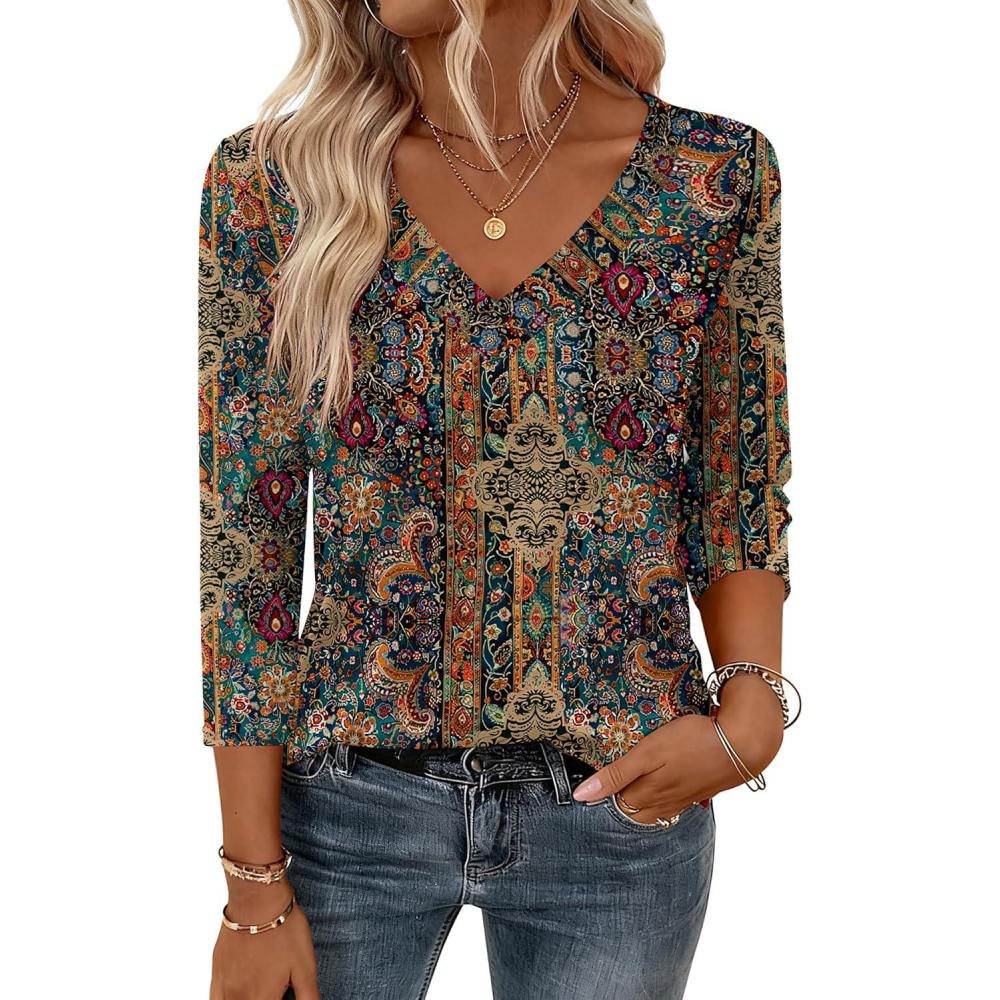 Zeagoo 3/4 Length Sleeve Womens Tops V Neck Shirt Dressy Casual Blouse Basic Tshirts 2025 Fashion Clothing S-2XL(Mz838)