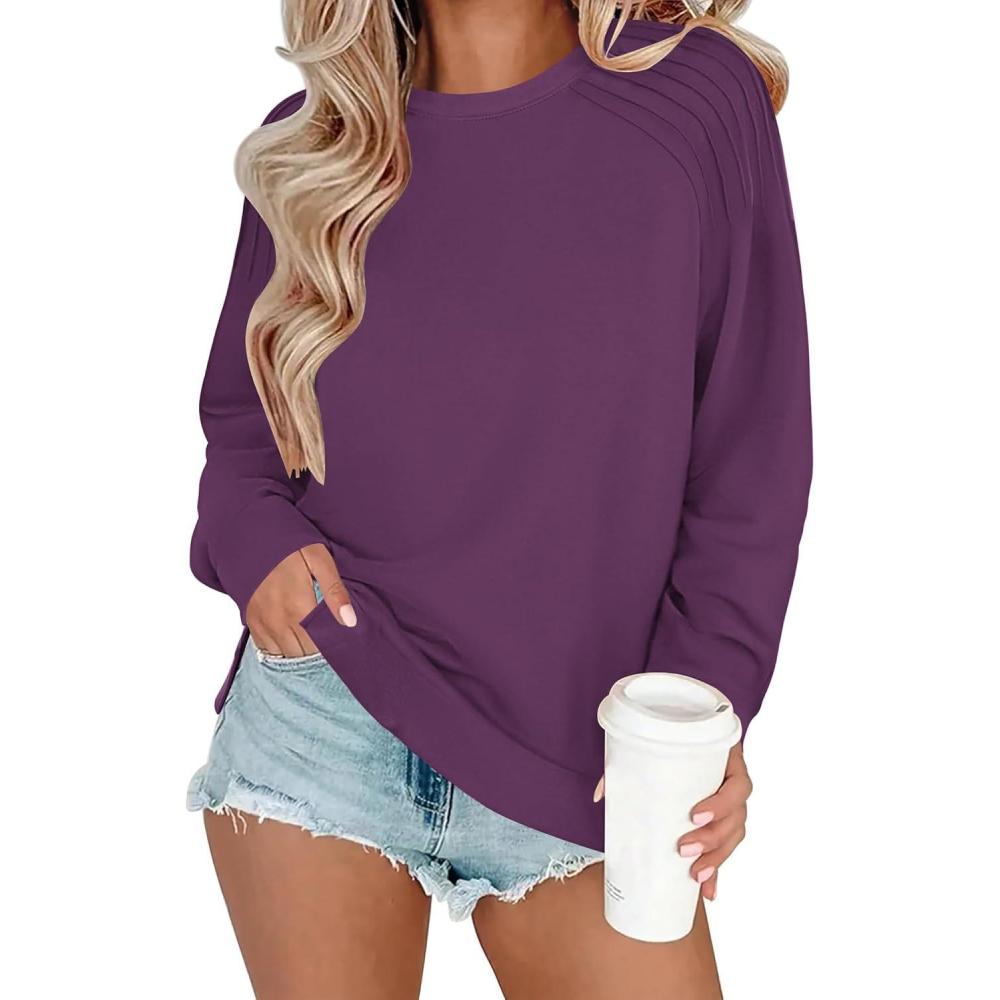 Zeagoo Christmas Tunic Sweatshirts for Women Crewneck Lightweight Sweaters Raglan Long Sleeve Shirts Fall Fashion Tops 2025(Purple)