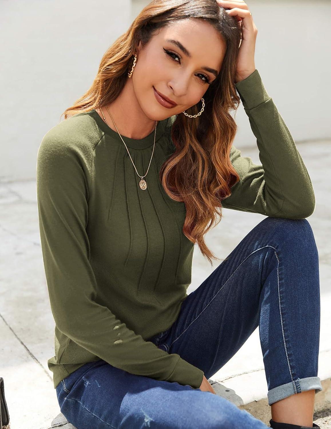Zeagoo Fall Tops for Women Long Sleeve Shirts Casual Cotton Blouses 2025 Dressy Pleated Tunics(Army Green)