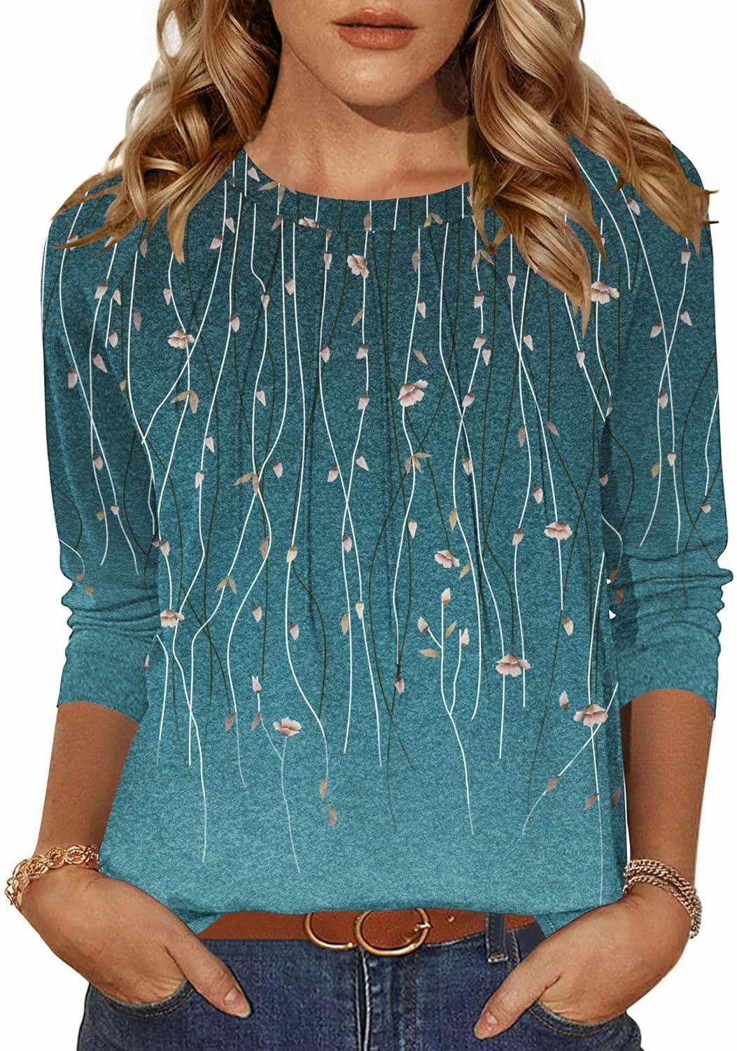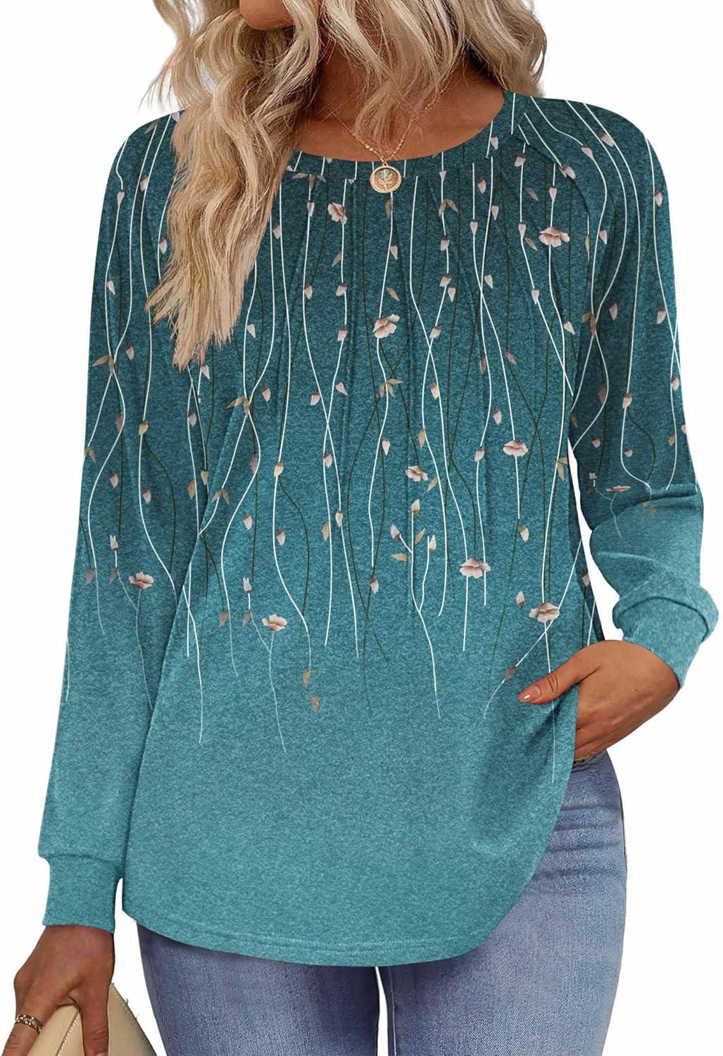Zeagoo Fall Tops for Women Long Sleeve Shirts Casual Cotton Blouses 2025 Dressy Pleated Tunics(Blue Floral)