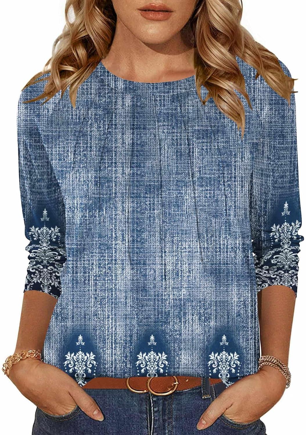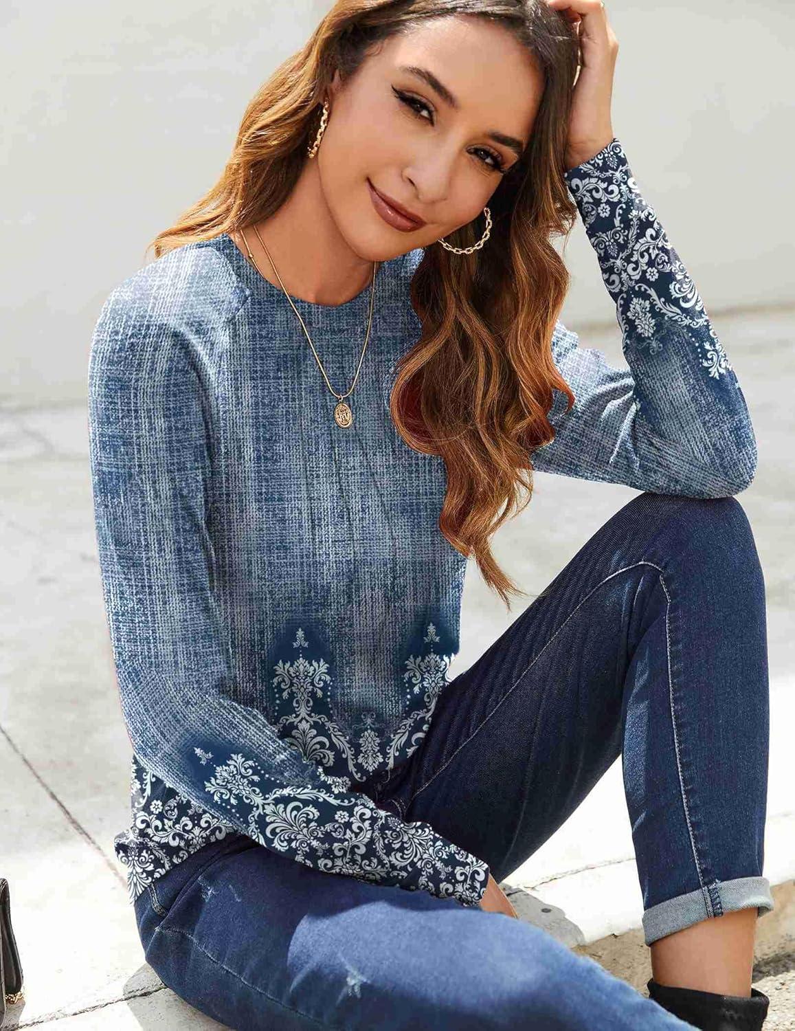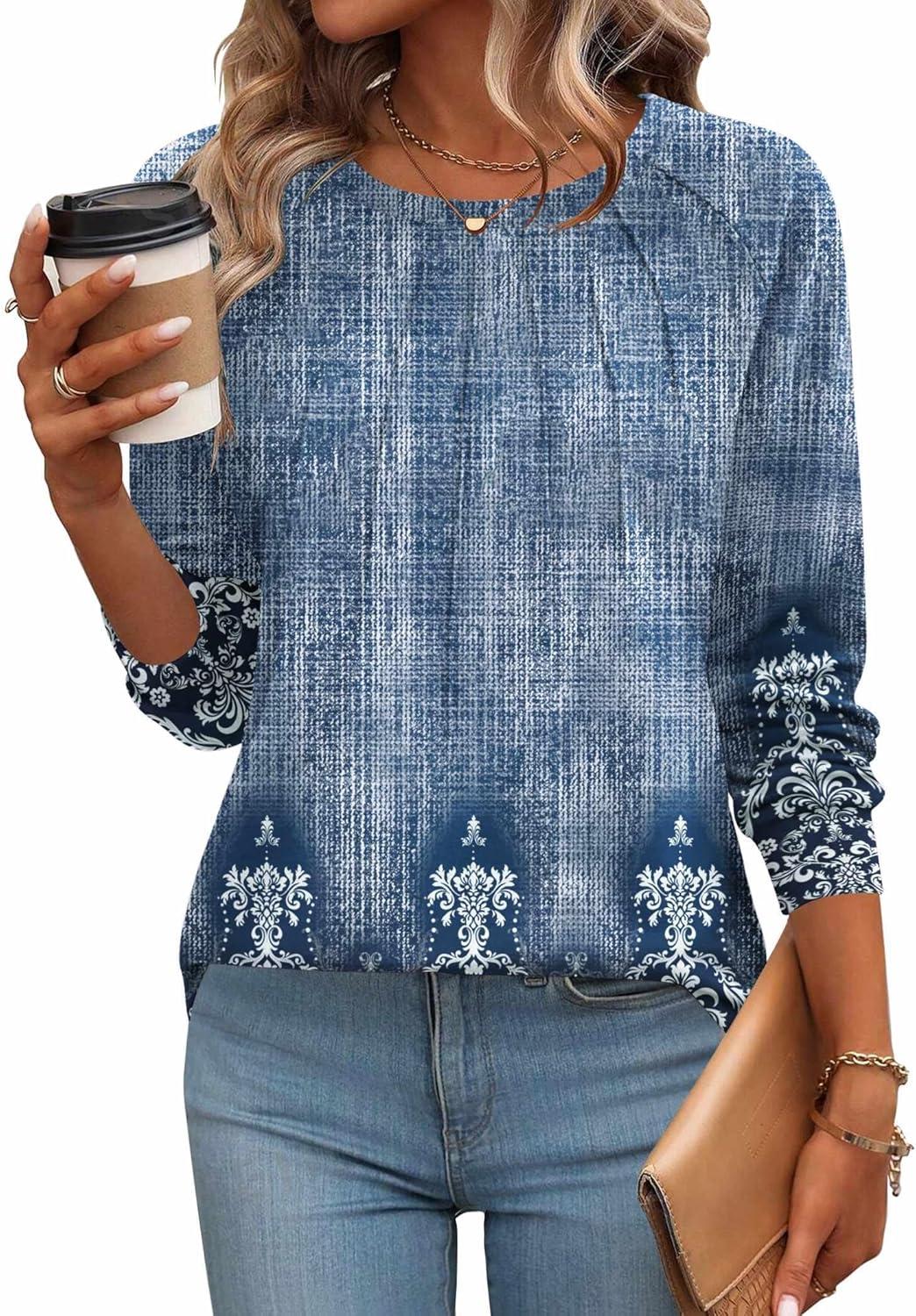 imageZeagoo Fall Tops for Women Long Sleeve Shirts Casual Cotton Blouses 2025 Dressy Pleated TunicsChic Print 01