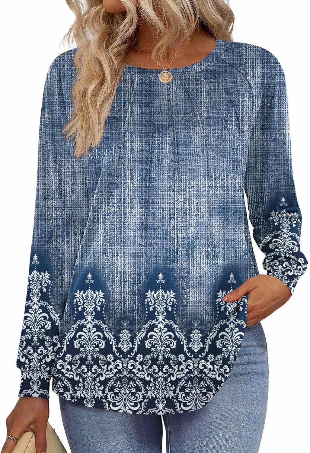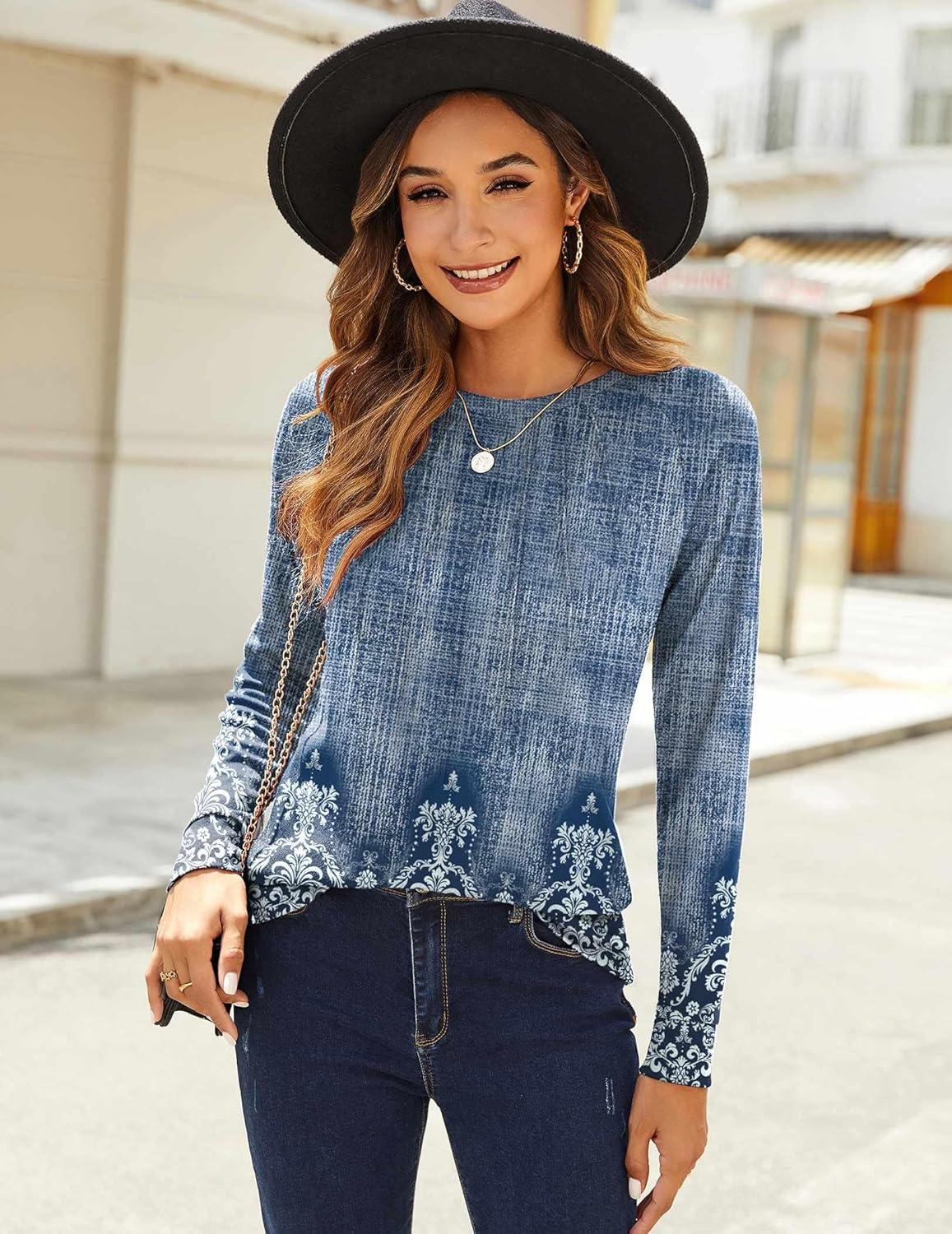 Zeagoo Fall Tops for Women Long Sleeve Shirts Casual Cotton Blouses 2025 Dressy Pleated Tunics(Chic Print 01)