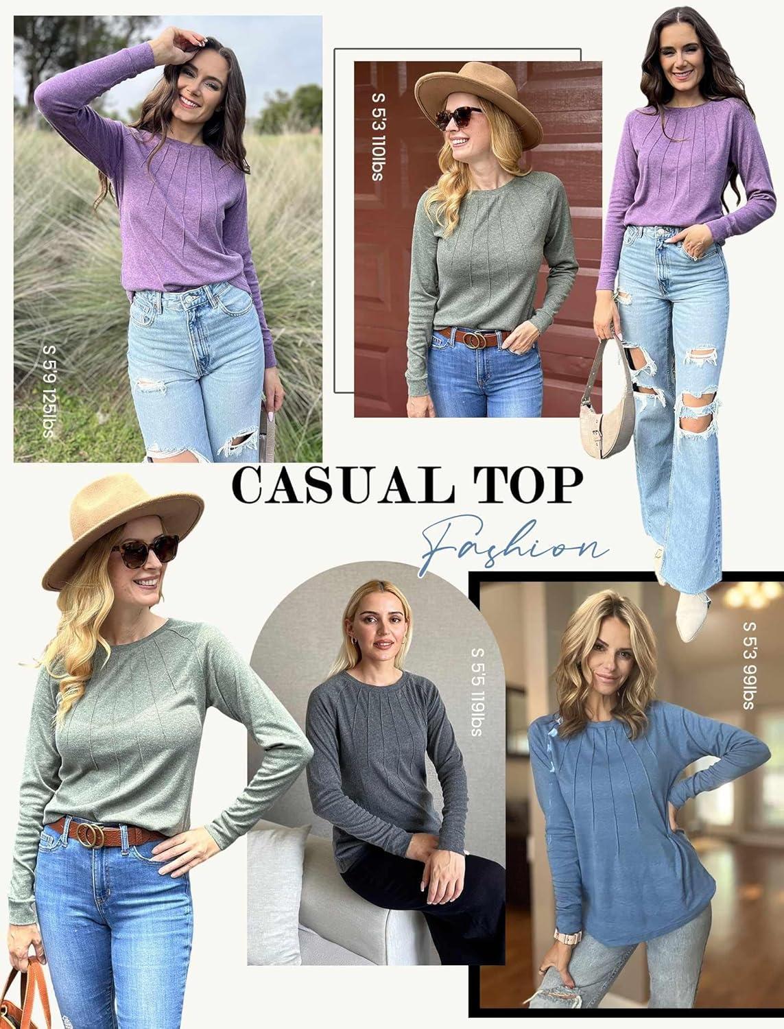 Zeagoo Fall Tops for Women Long Sleeve Shirts Casual Cotton Blouses 2025 Dressy Pleated Tunics(Mid-grey)