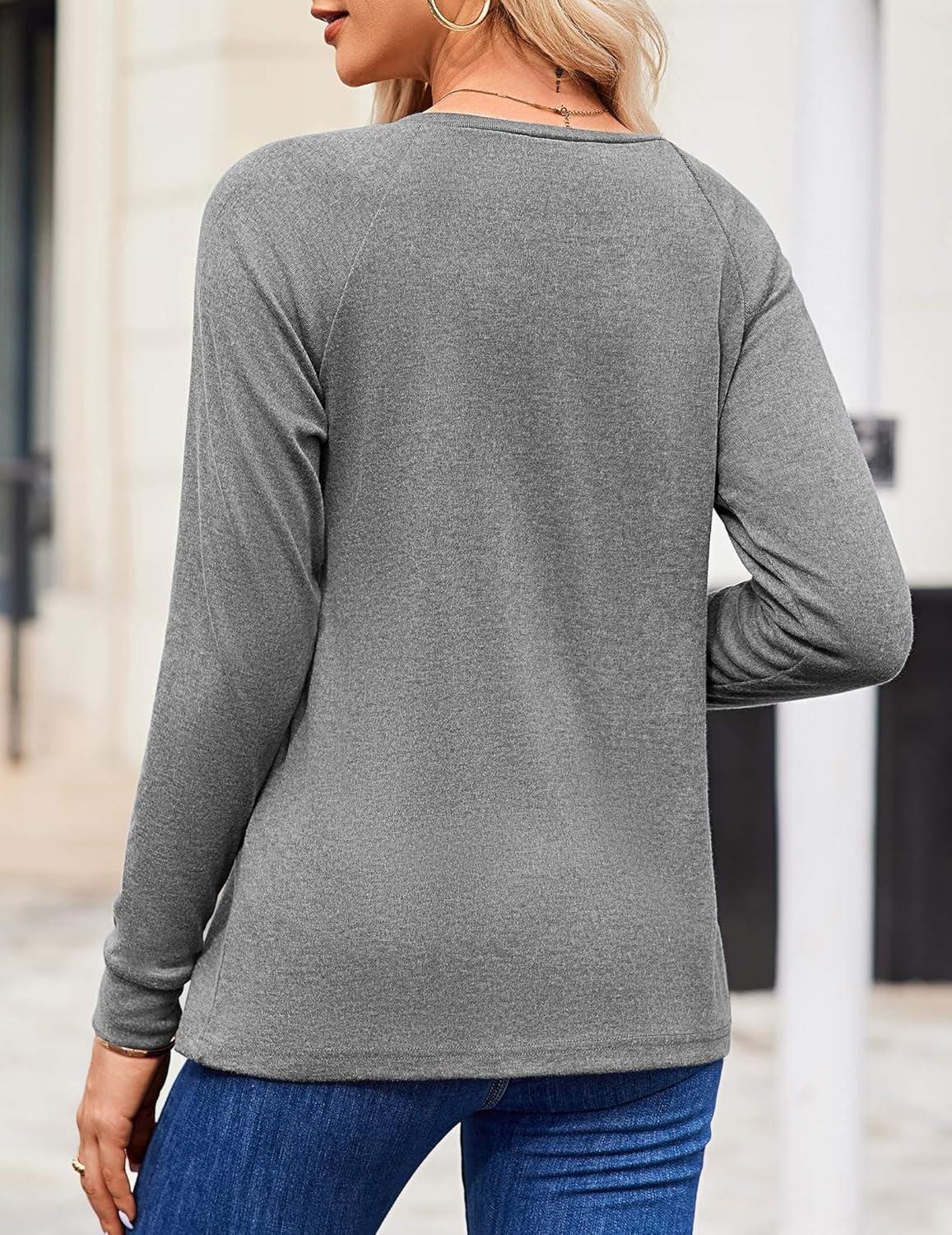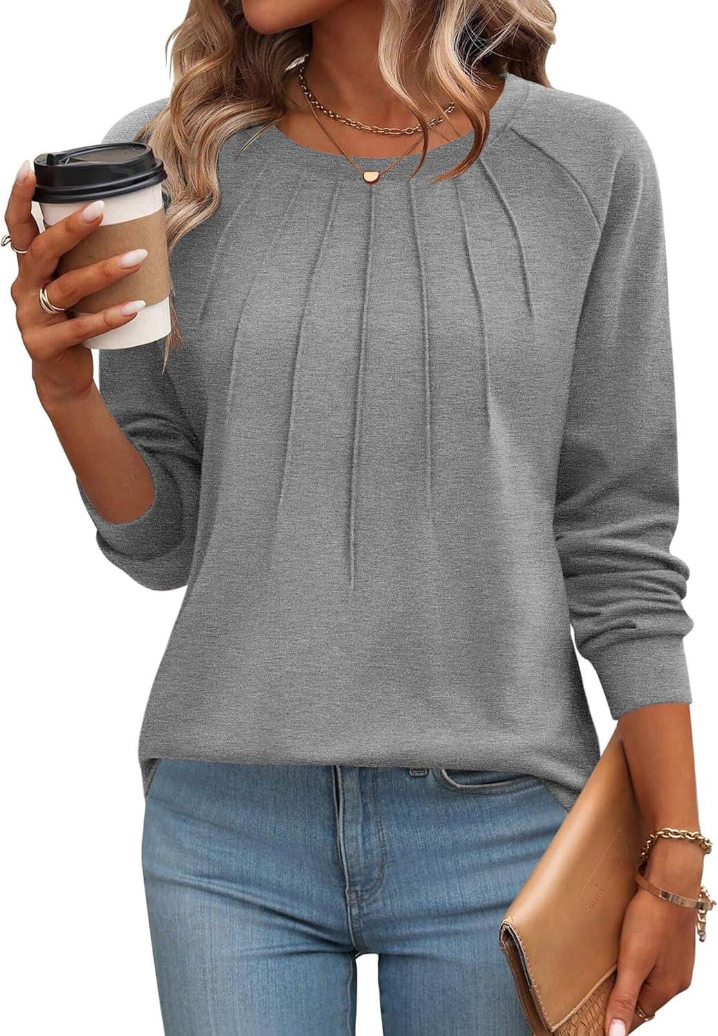 Zeagoo Fall Tops for Women Long Sleeve Shirts Casual Cotton Blouses 2025 Dressy Pleated Tunics(Mid-grey)