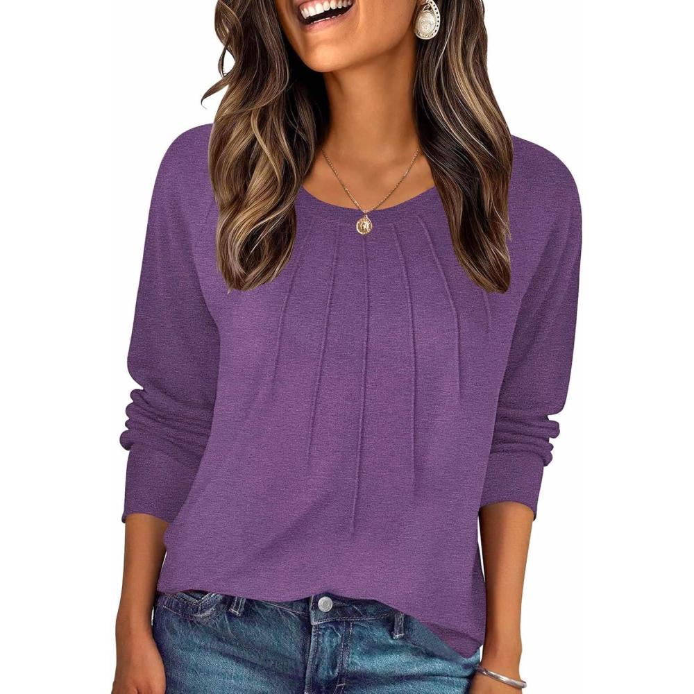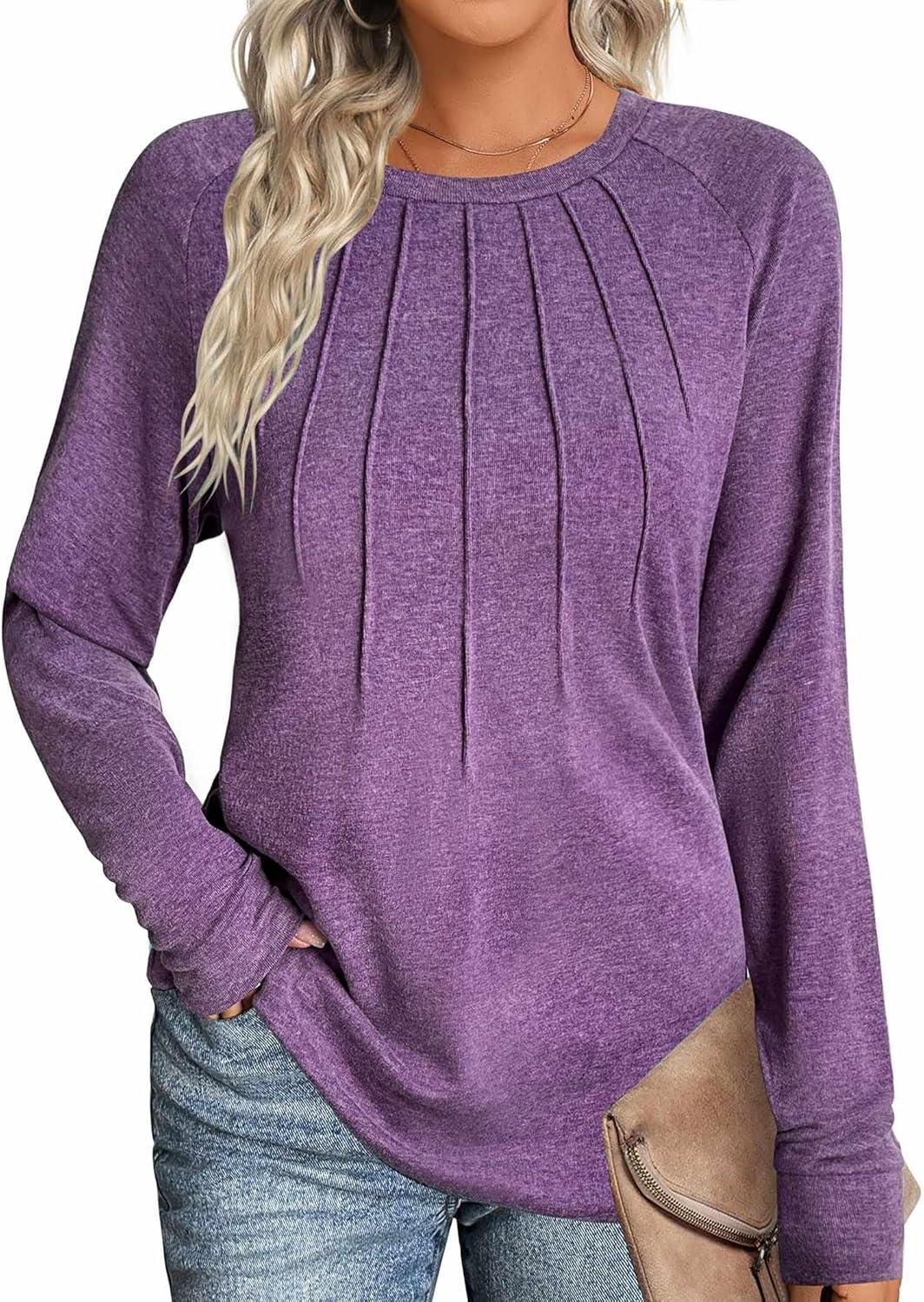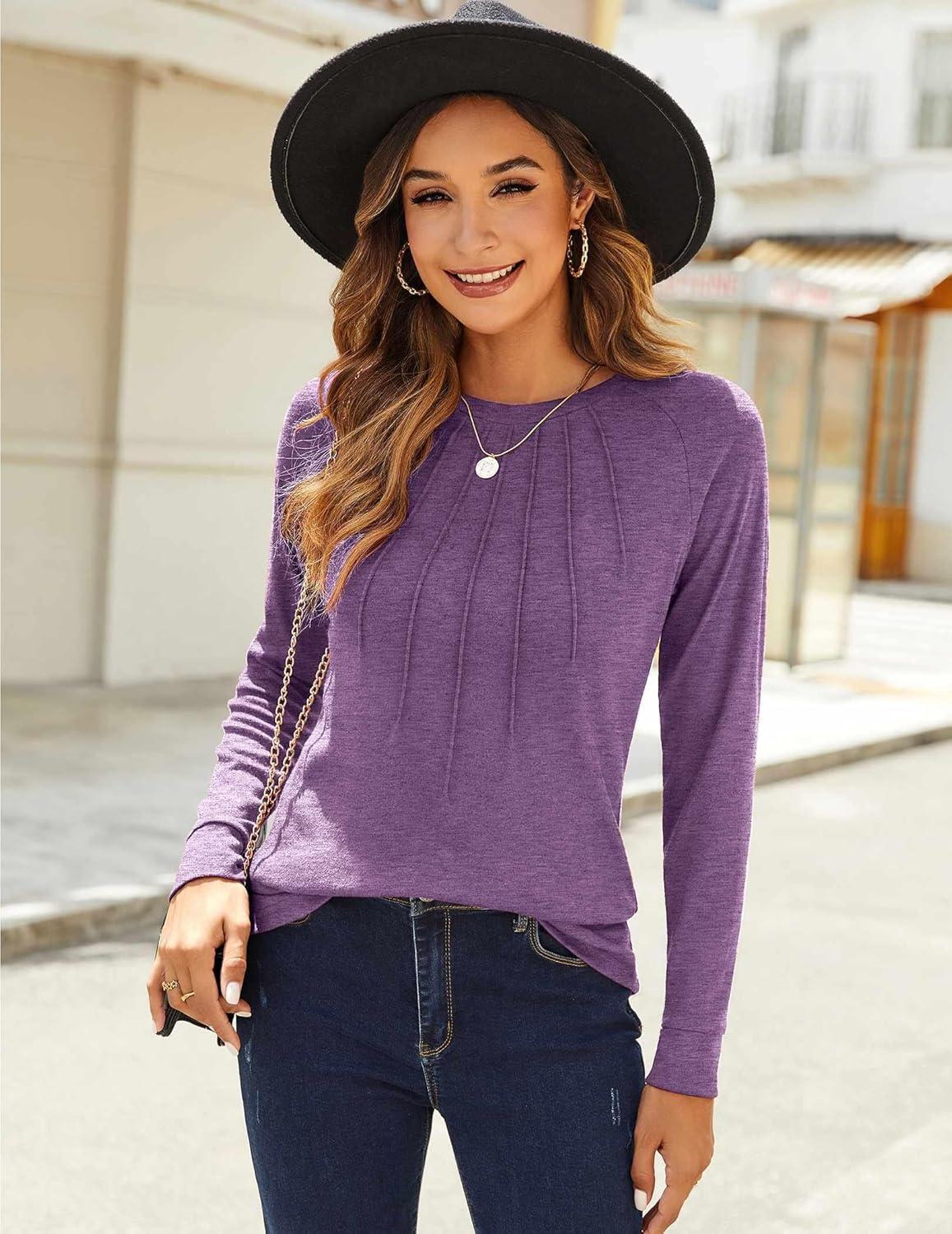 Zeagoo Fall Tops for Women Long Sleeve Shirts Casual Cotton Blouses 2025 Dressy Pleated Tunics(Purple)