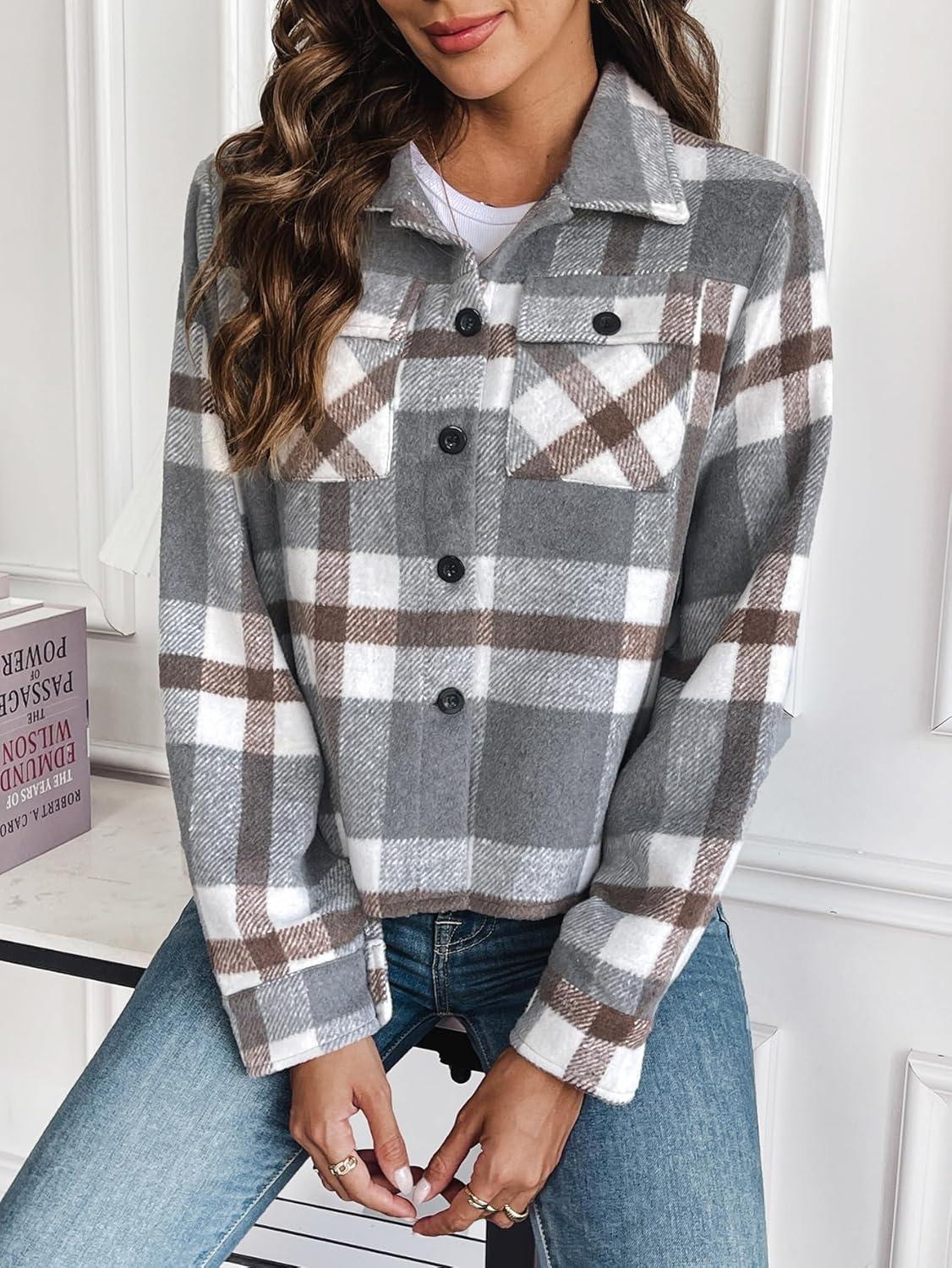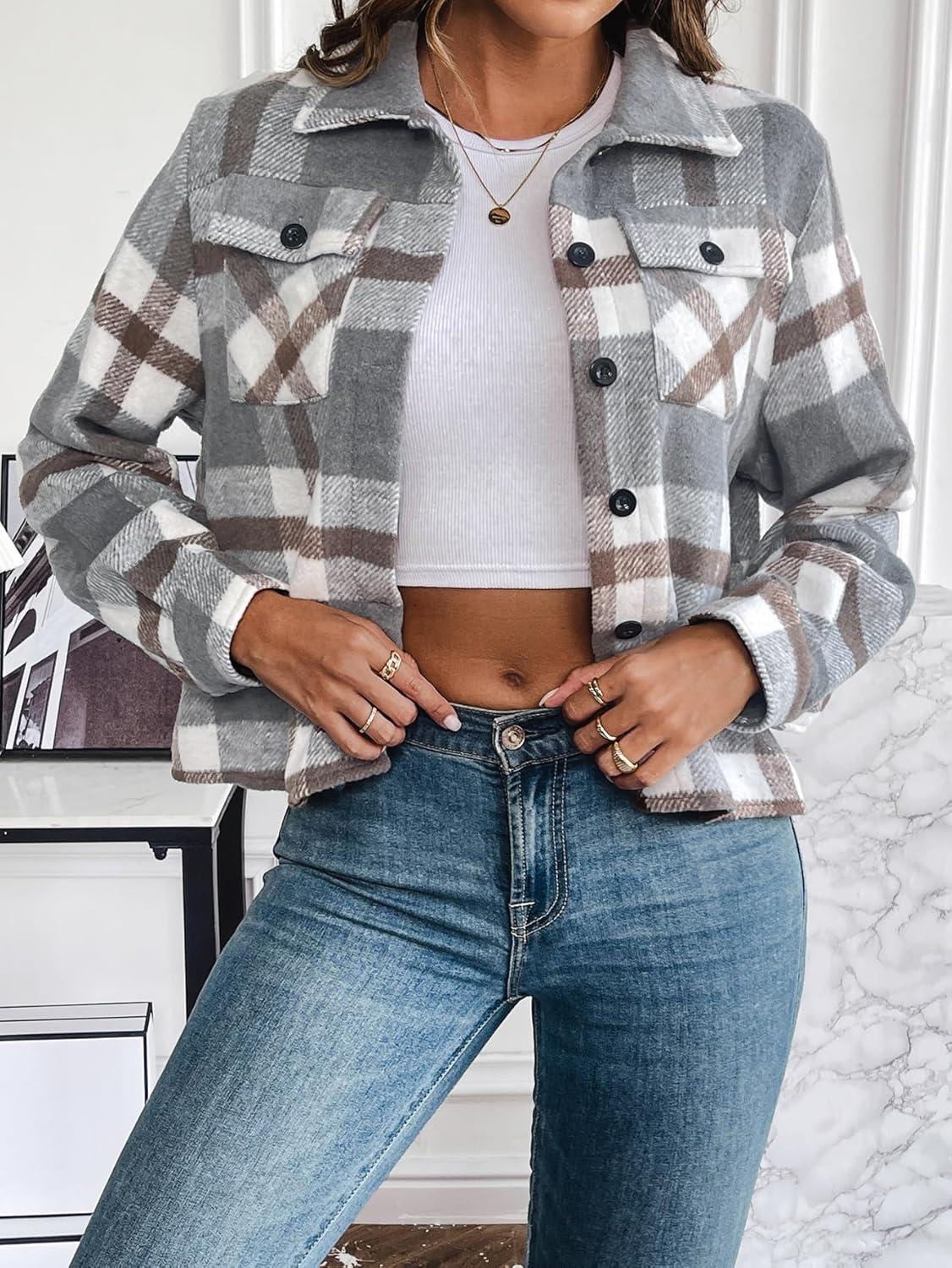 Zeagoo Flannels for Women Cropped Shacket Jacket Fashion Plaid Button Down Shirt 2026 Fall Coat Tops(Z-gz383)