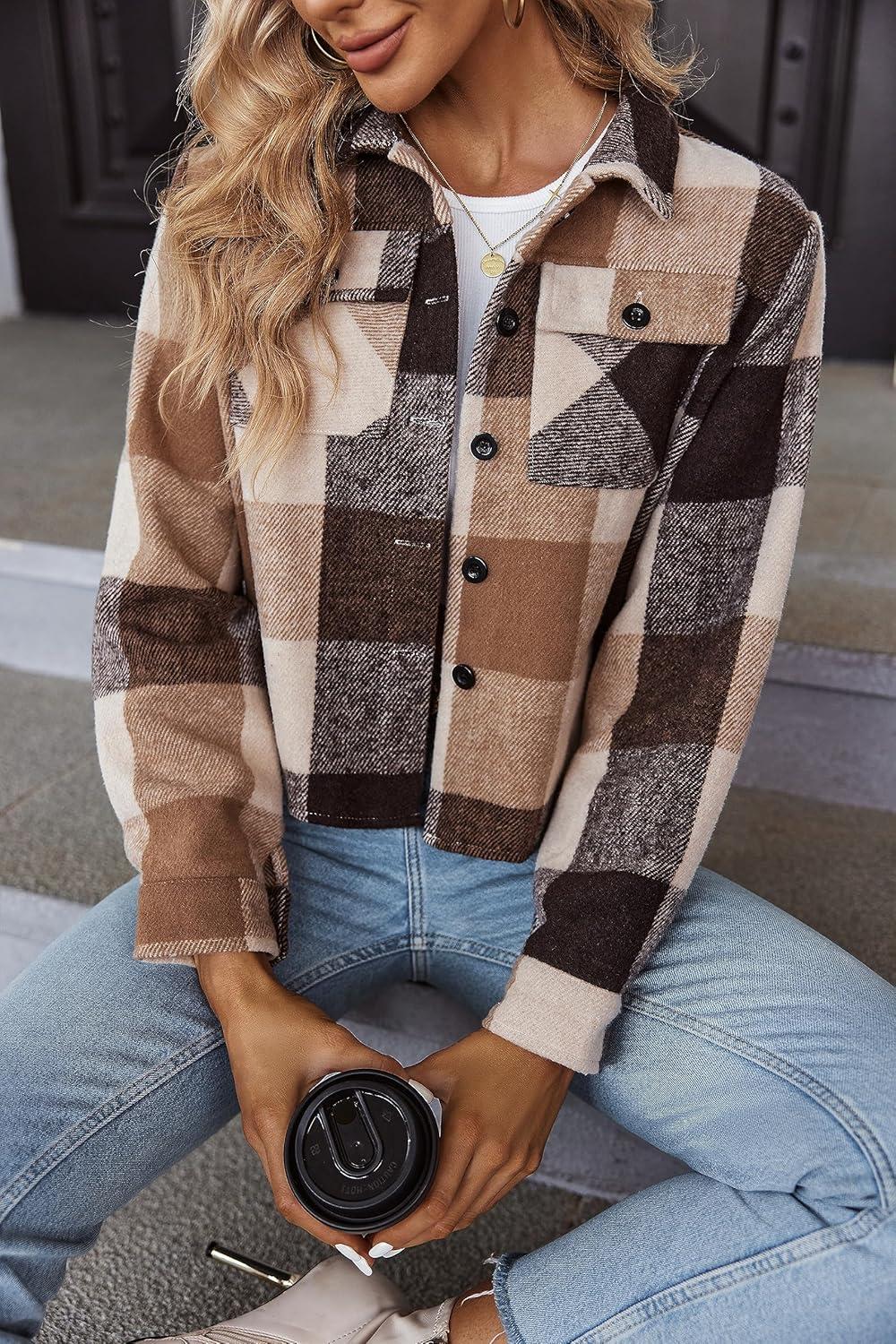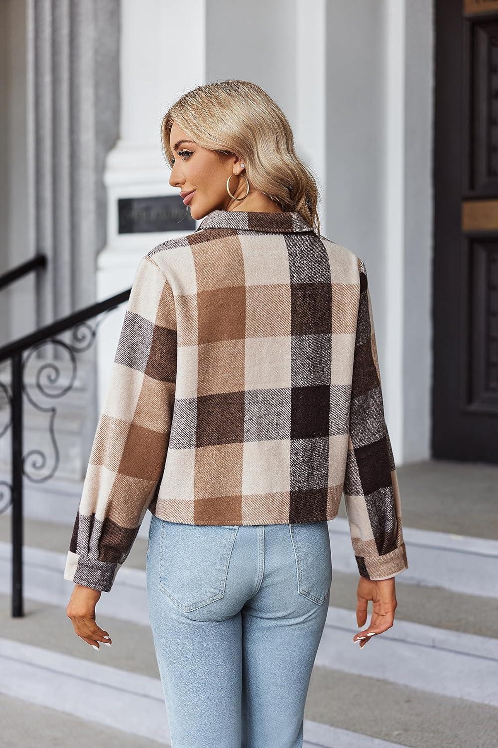 Zeagoo Flannels for Women Cropped Shacket Jacket Fashion Plaid Button Down Shirt 2026 Fall Coat Tops(Ydl5)
