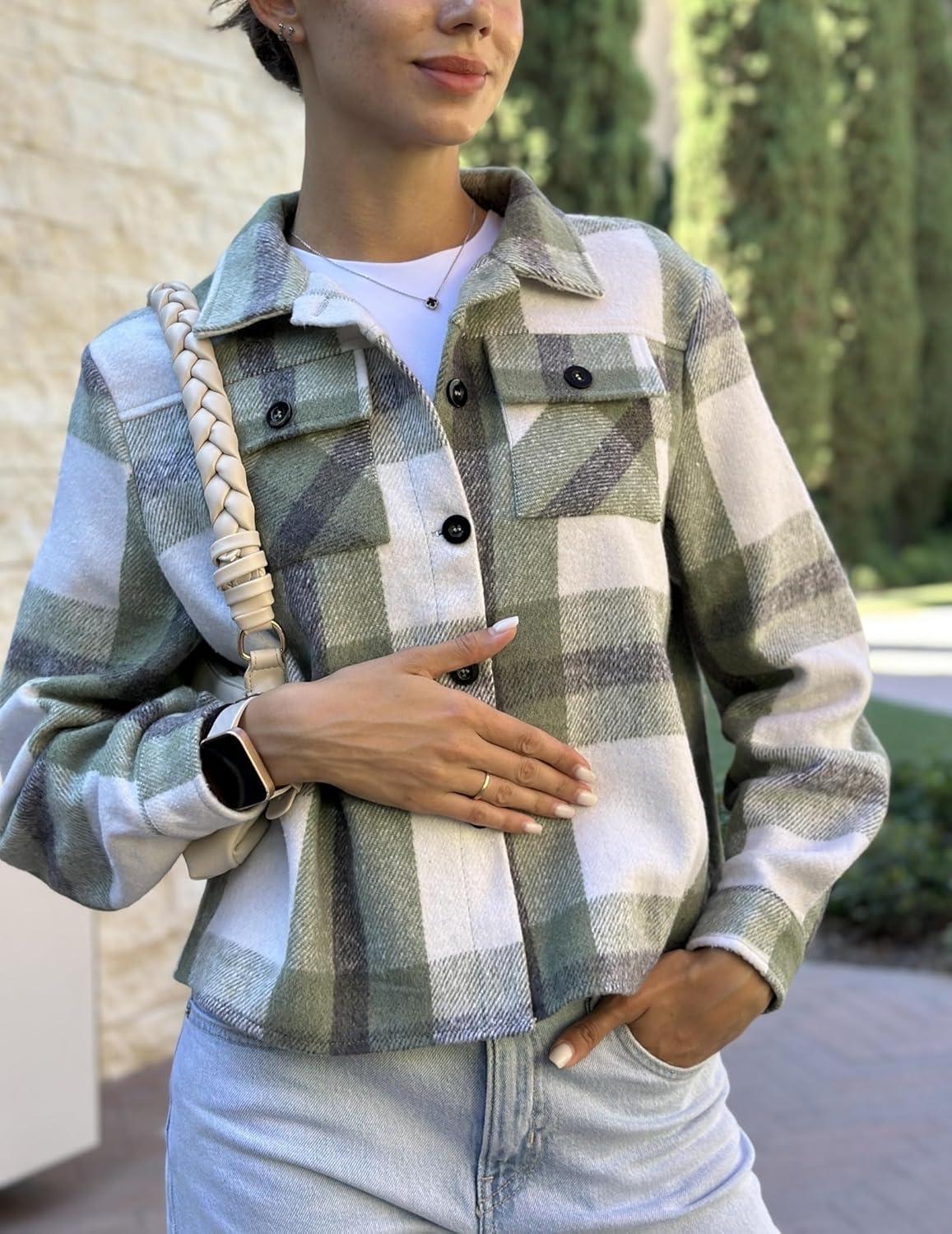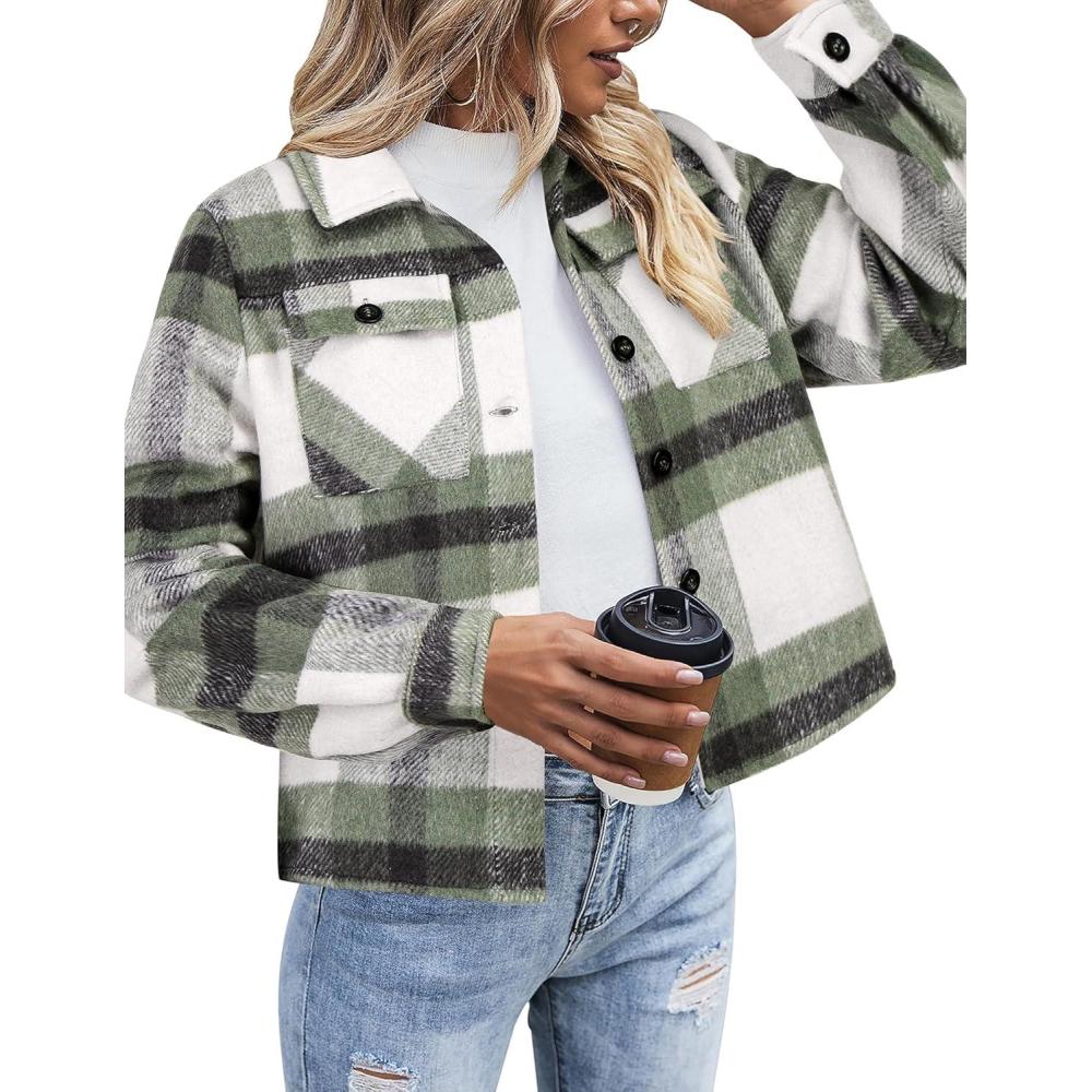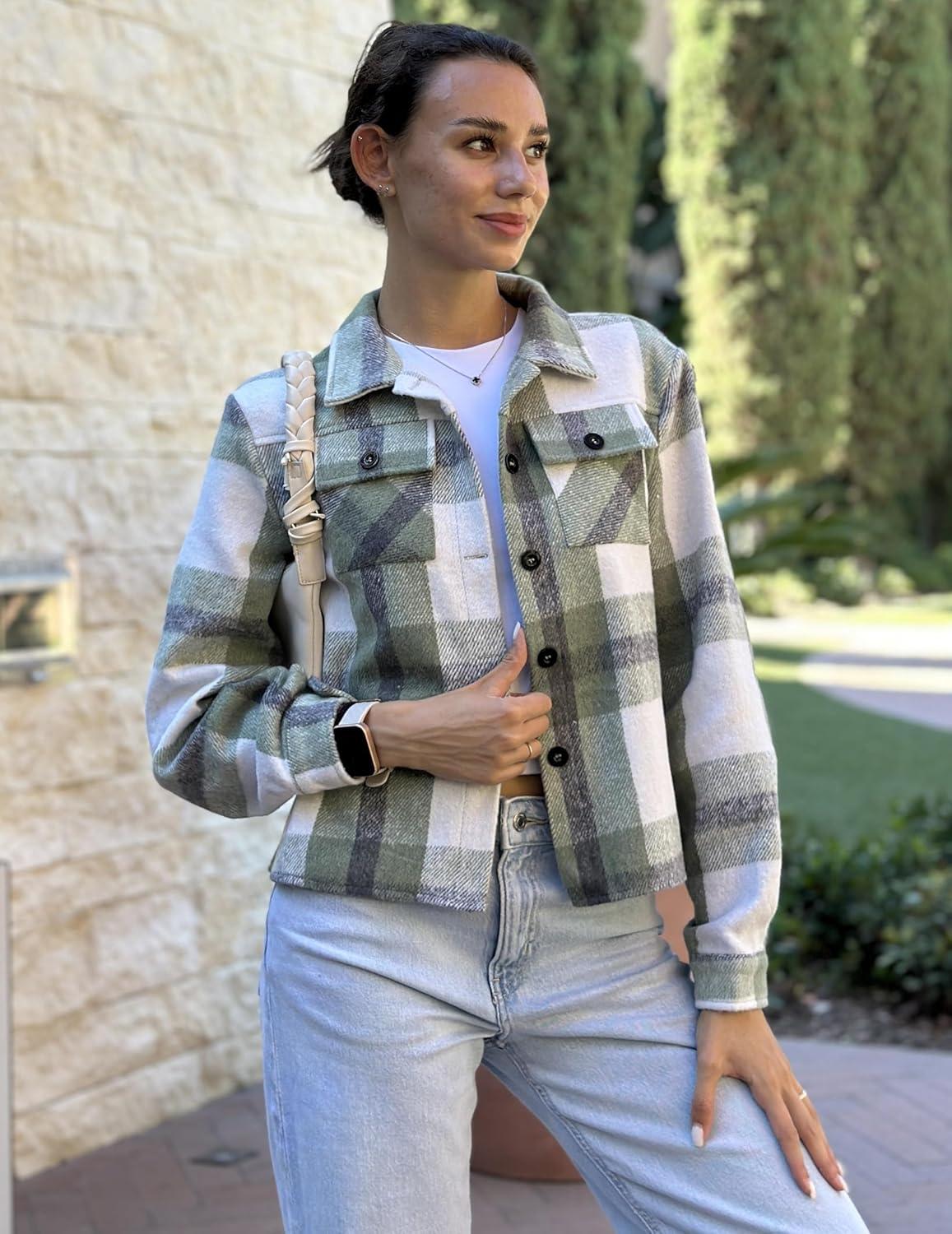 Zeagoo Flannels for Women Cropped Shacket Jacket Fashion Plaid Button Down Shirt 2026 Fall Coat Tops(Z-gw101)