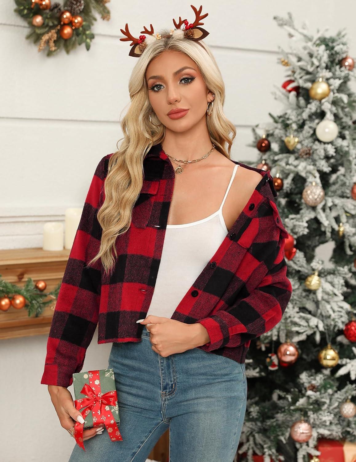 Zeagoo Flannels for Women Cropped Shacket Jacket Fashion Plaid Button Down Shirt 2026 Fall Coat Tops(Z-gw18)