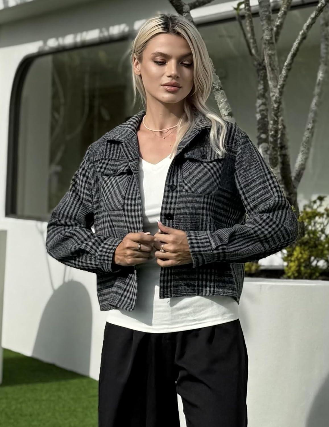 image:imageZeagoo Flannels for Women Cropped Shacket Jacket Fashion Plaid Button Down Shirt 2026 Fall Coat TopsZgz293