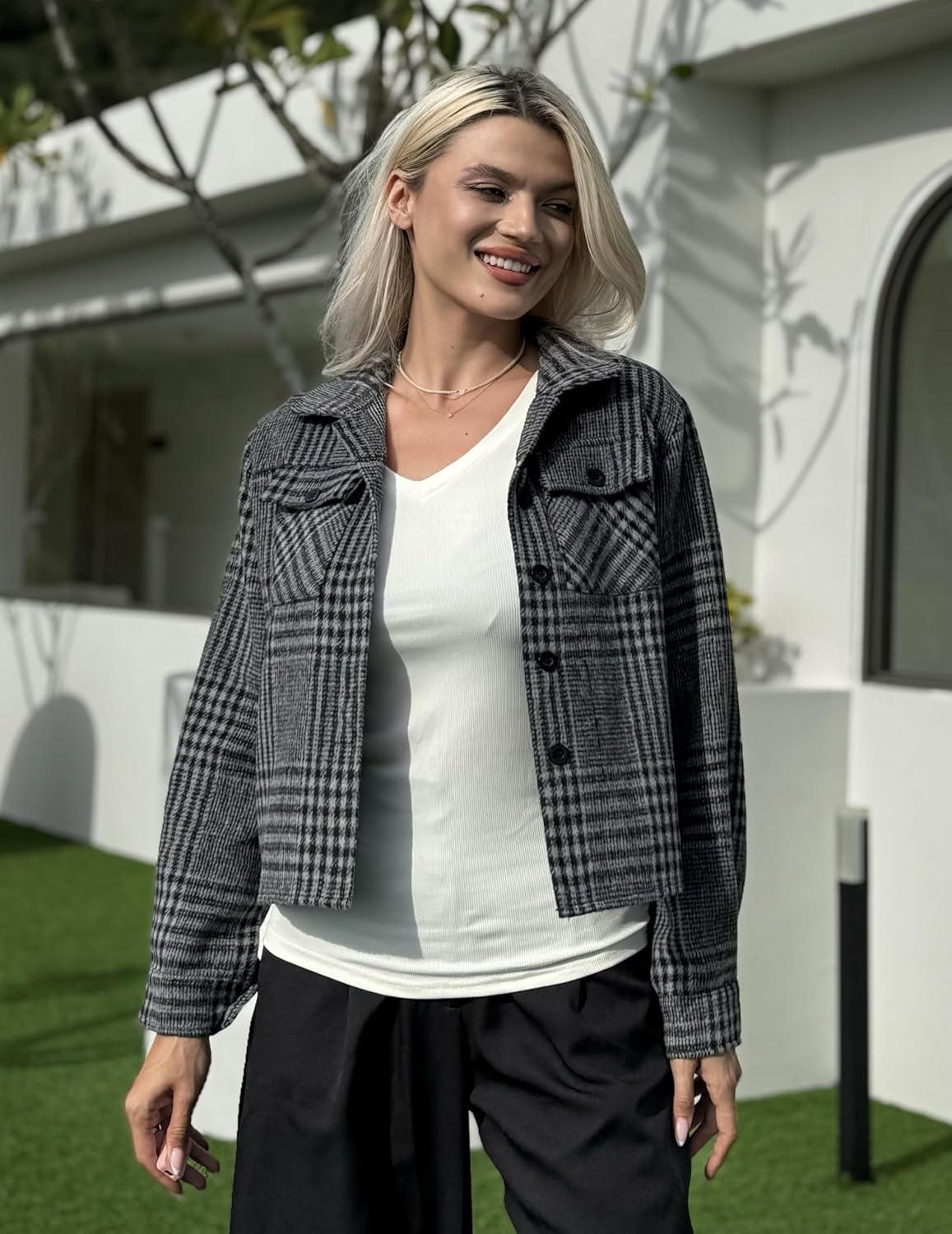 Zeagoo Flannels for Women Cropped Shacket Jacket Fashion Plaid Button Down Shirt 2026 Fall Coat Tops(Z-gw19)