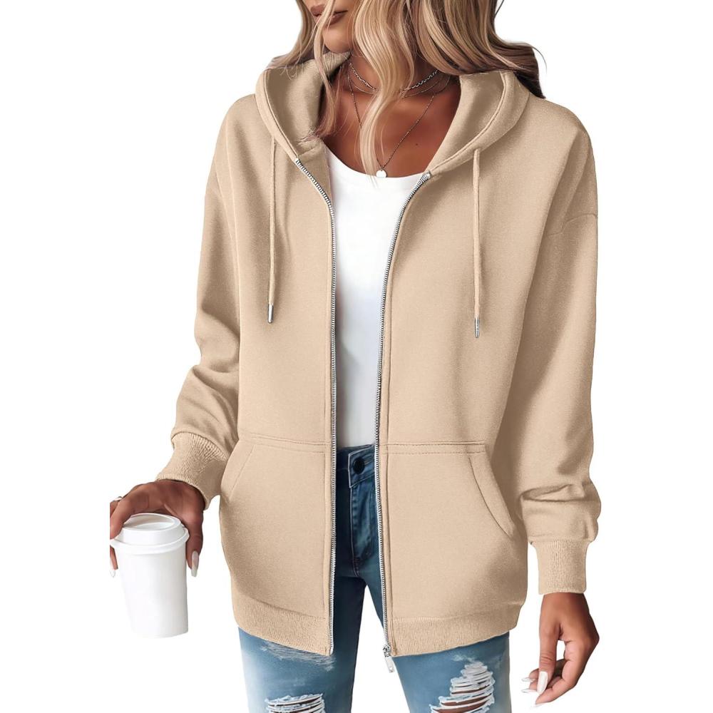 Zeagoo Hoodies For Women Zip Up Hoodie Oversized Sweatshirt Fleece Jackets Fall Winter Coats 2025 Fashion(Khaki)
