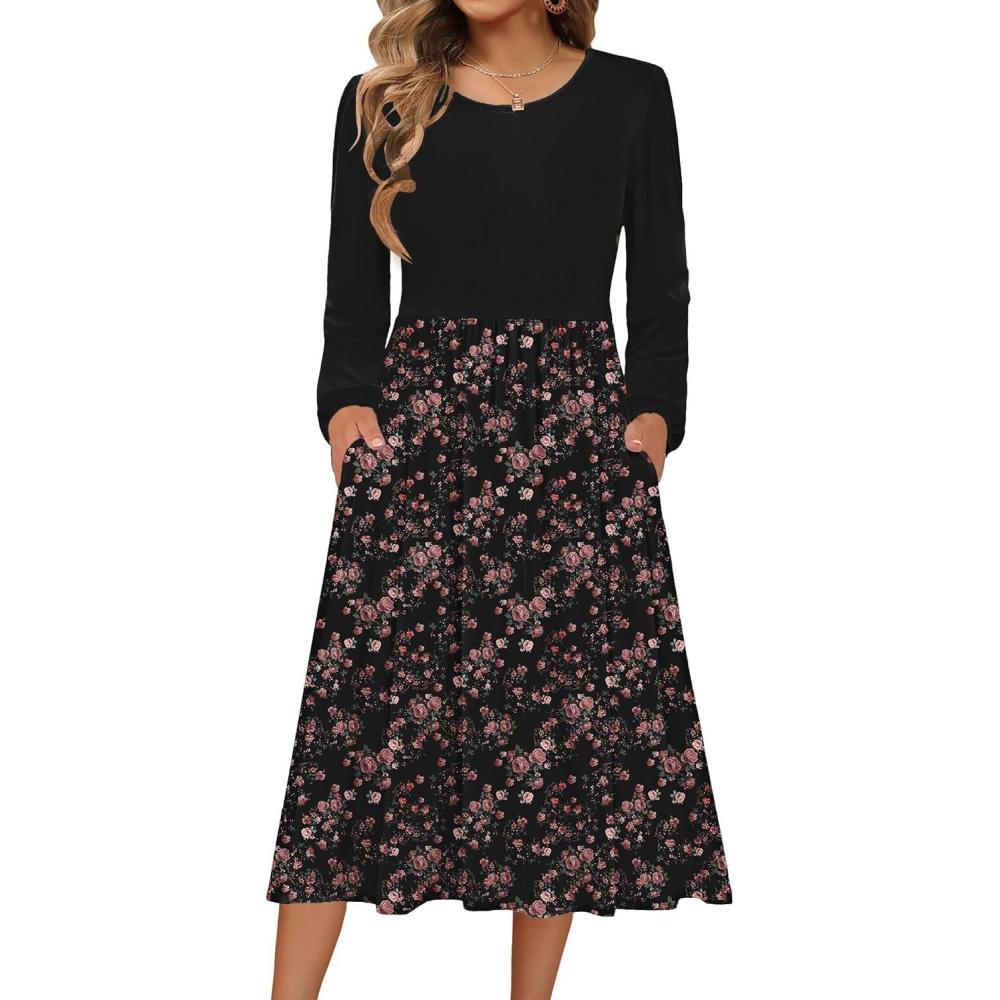 Zeagoo Long Sleeve Dresses for Women 2025 Fall Winter Casual Flowy A-Line Boho Midi Party Long Dress with Pockets(Pat4)