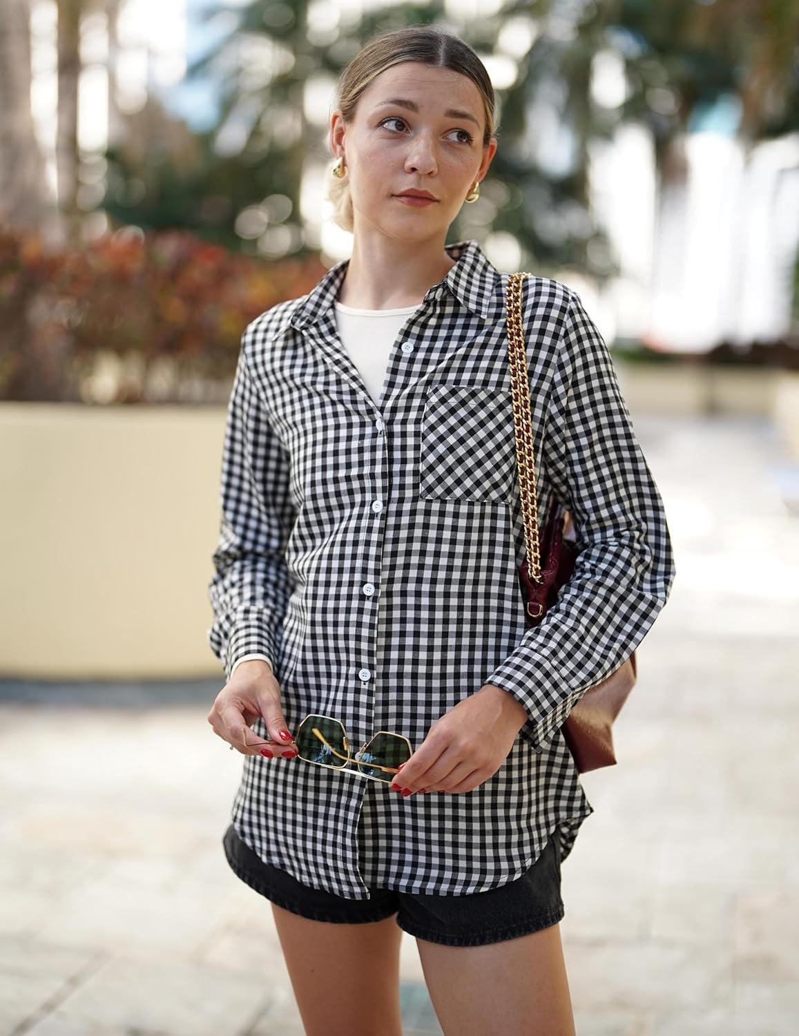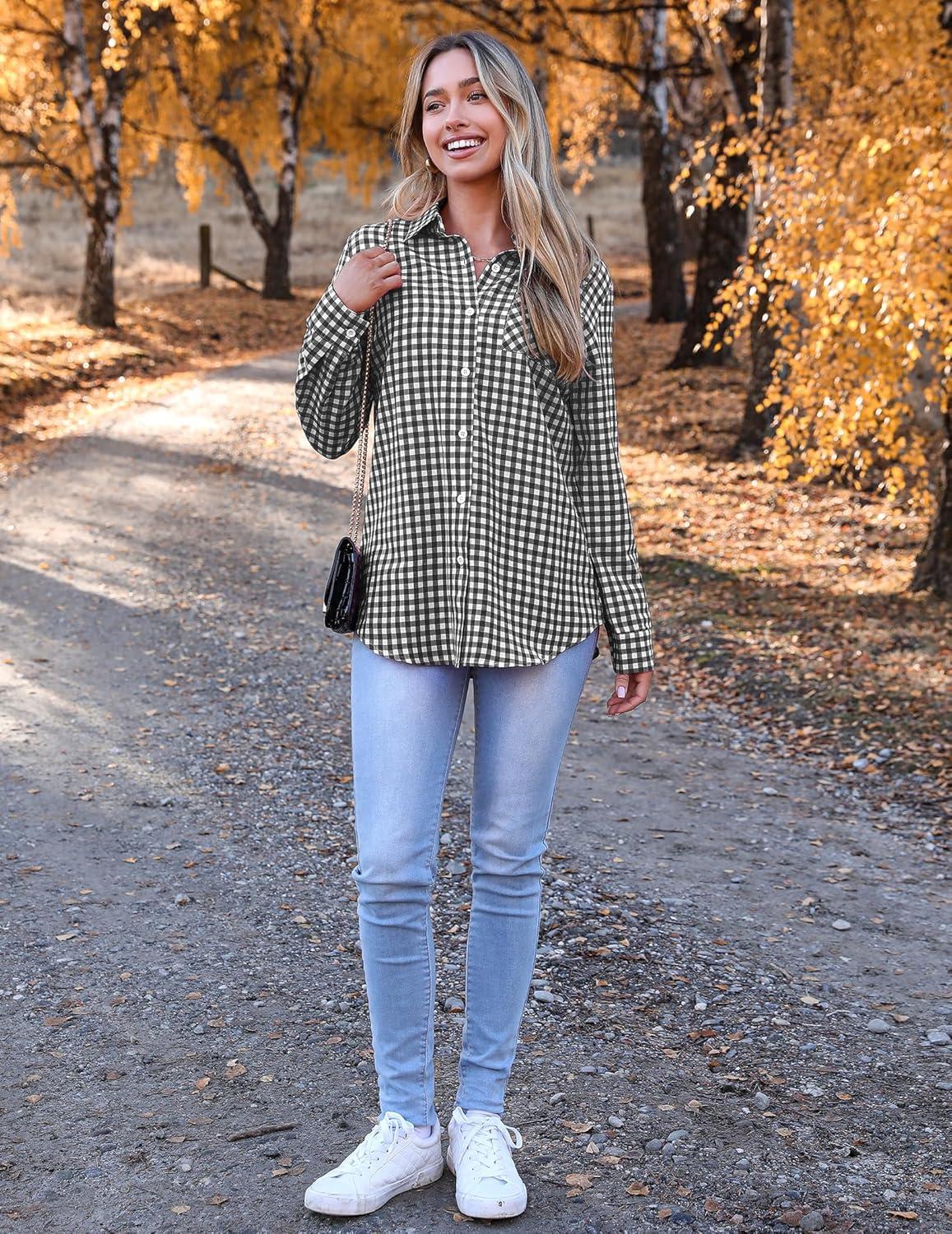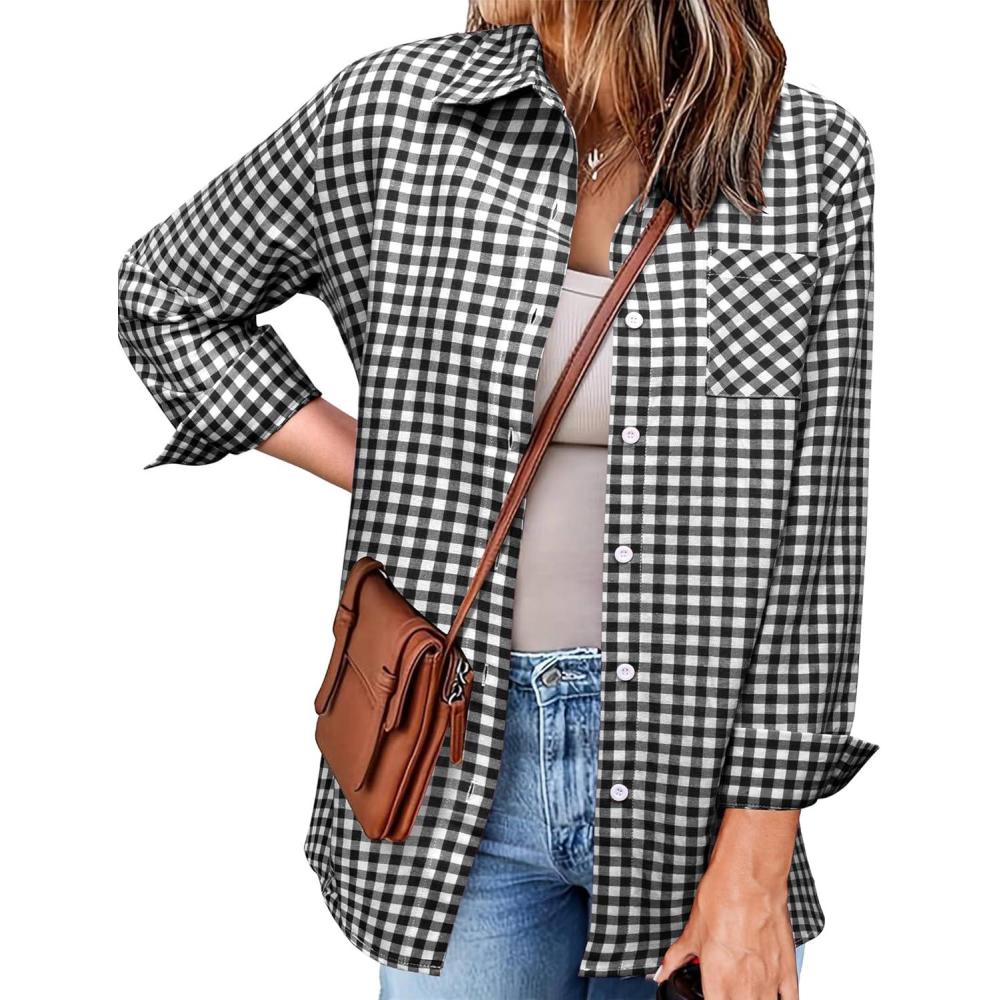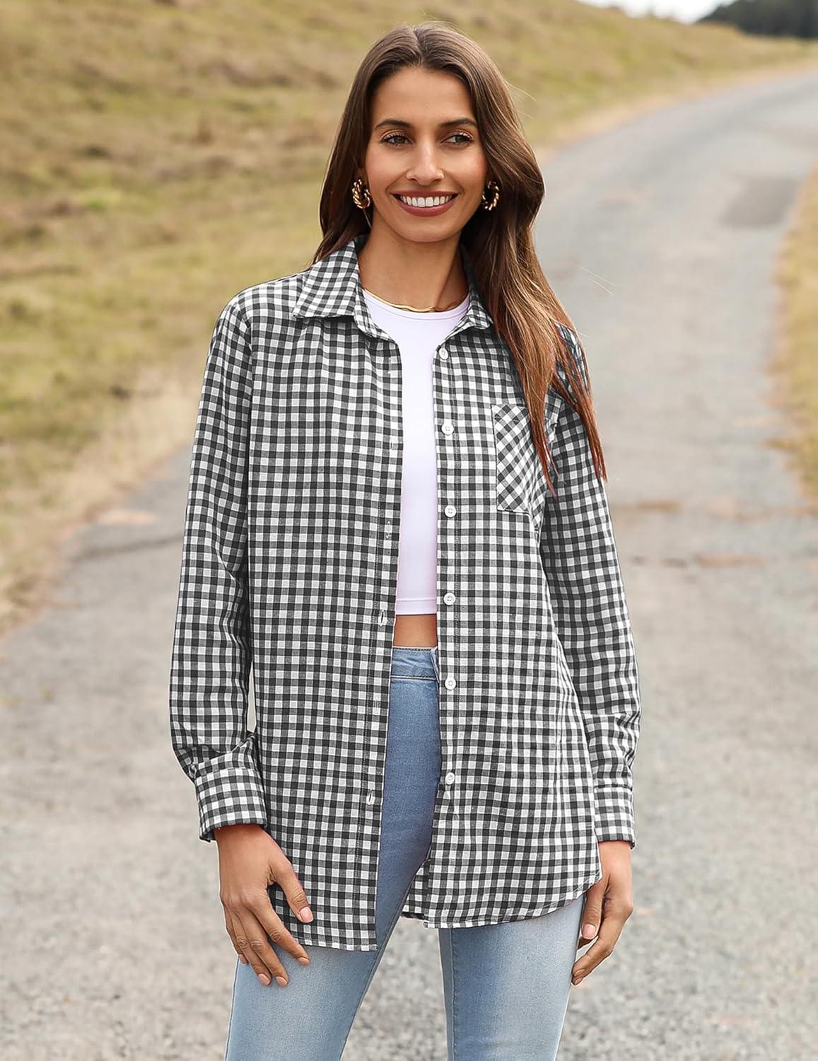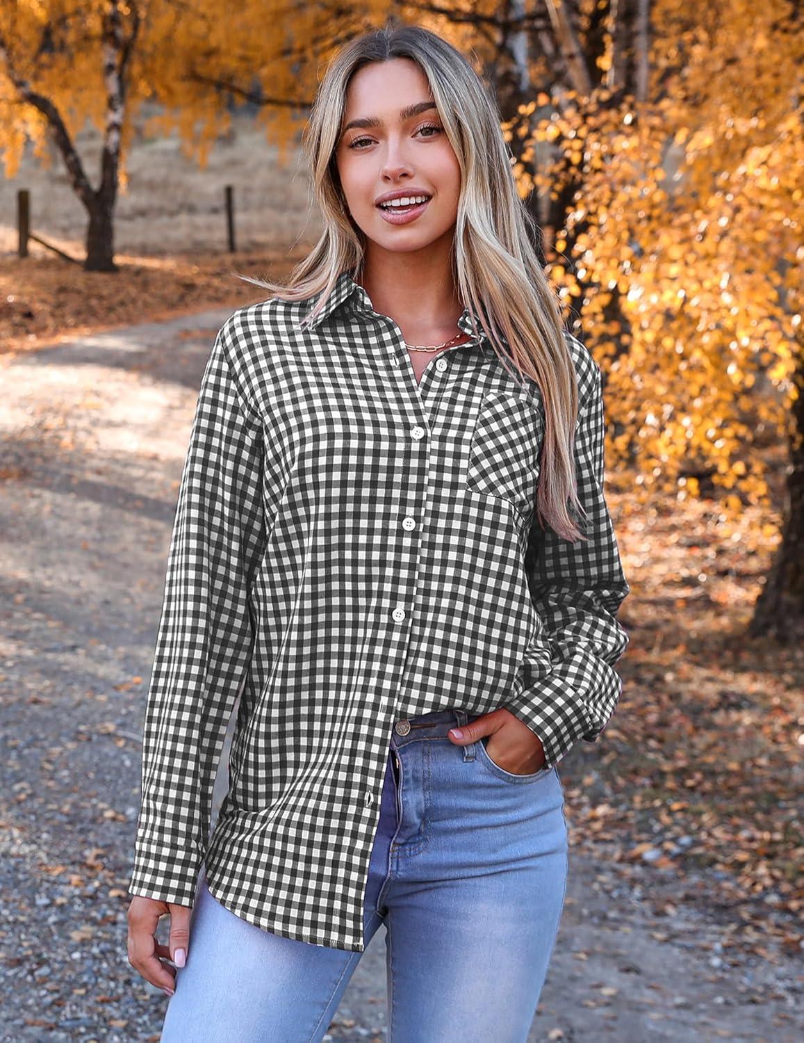 Zeagoo Long Sleeve Plaid Shirt for Women Button Down Shirts Buffalo Shackets Business Casual Blouses(Black)