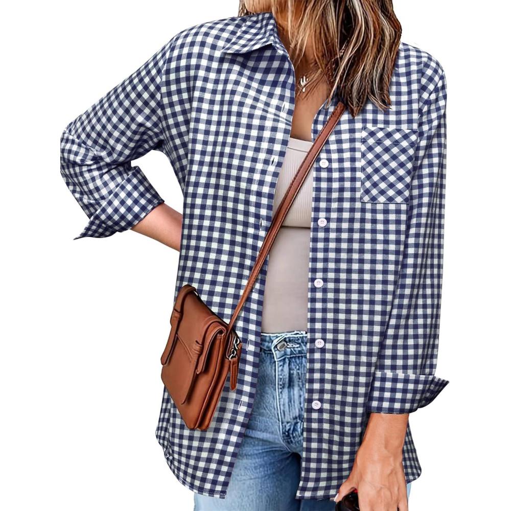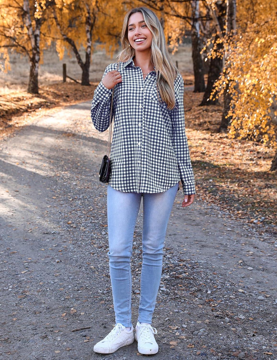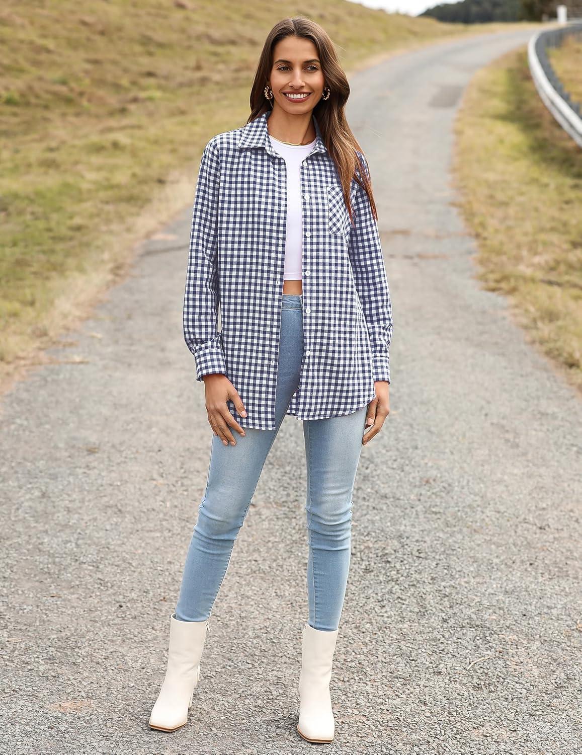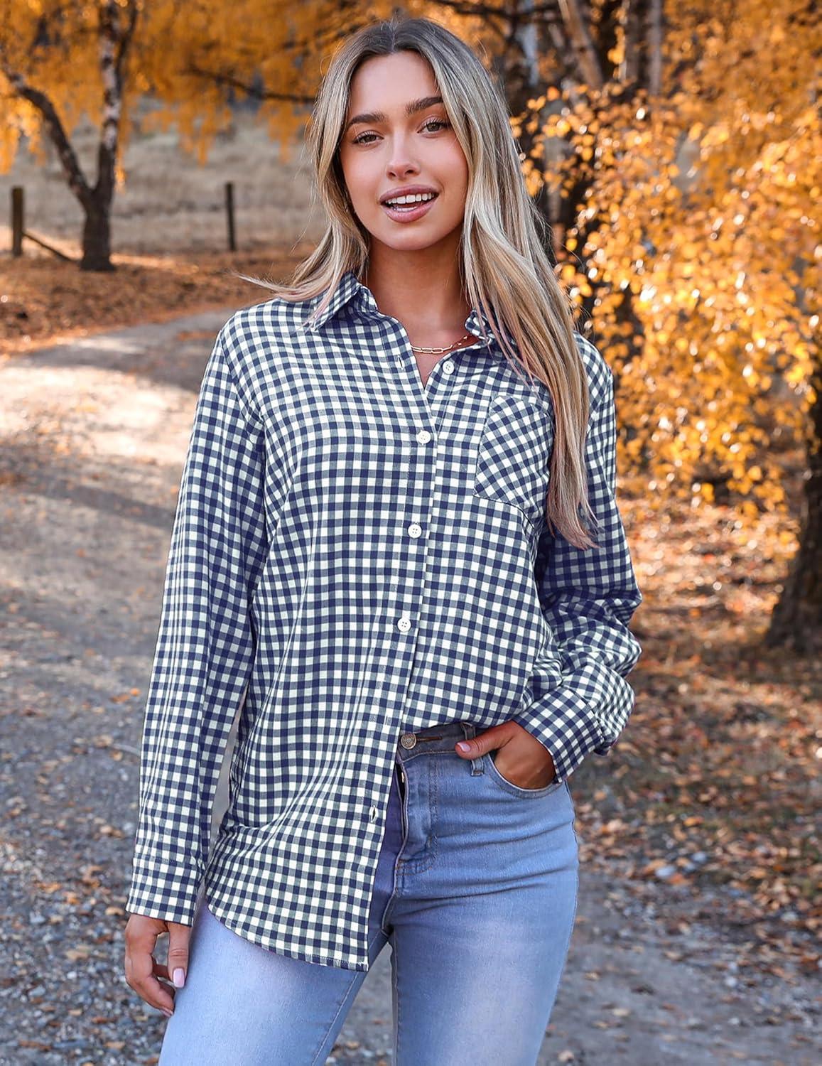 Zeagoo Long Sleeve Plaid Shirt for Women Button Down Shirts Buffalo Shackets Business Casual Blouses(Blue)