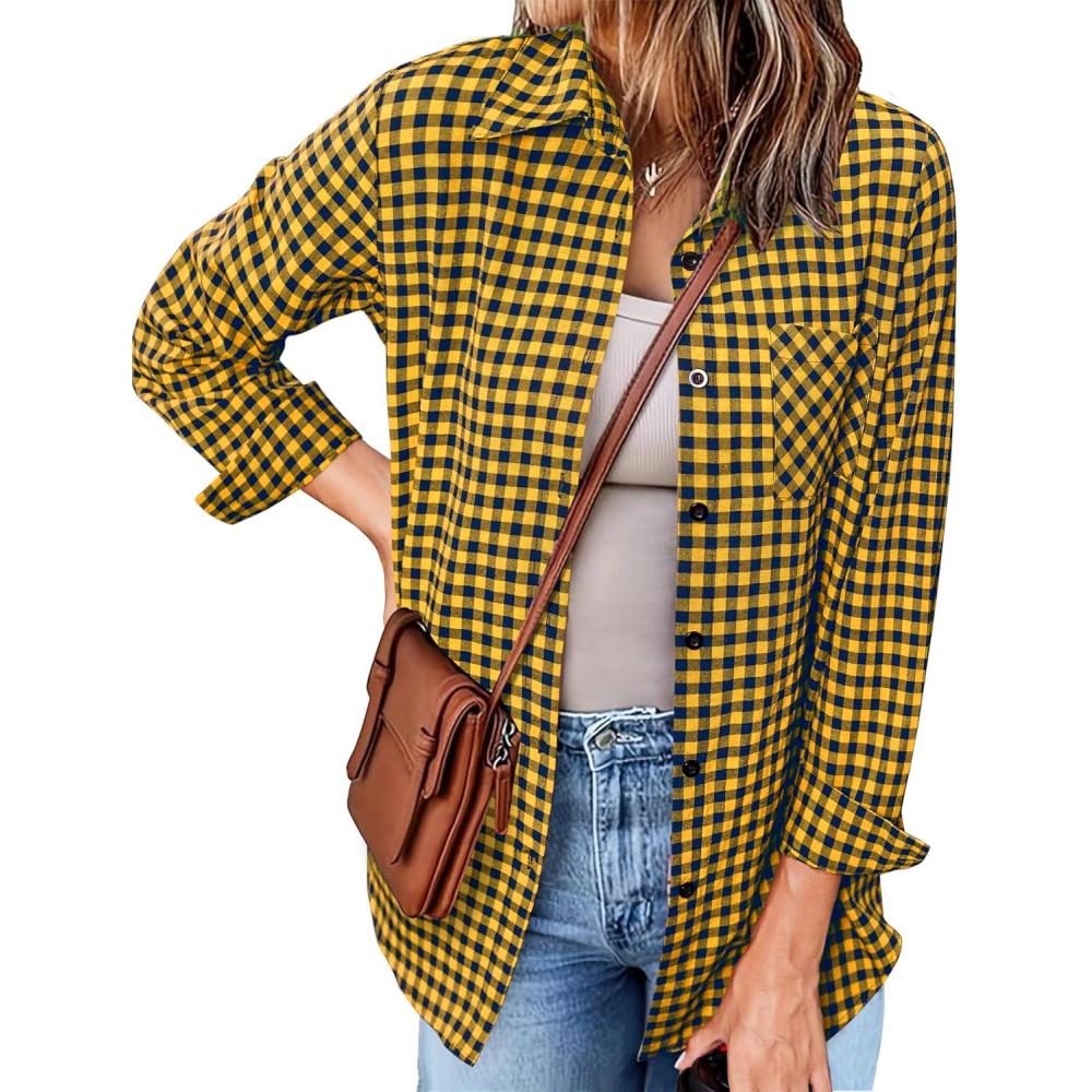 Zeagoo Long Sleeve Plaid Shirt for Women Button Down Shirts Buffalo Shackets Business Casual Blouses(Yellow Blue)