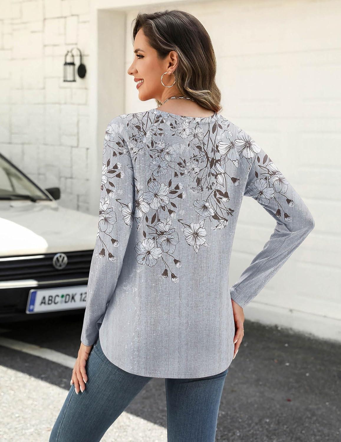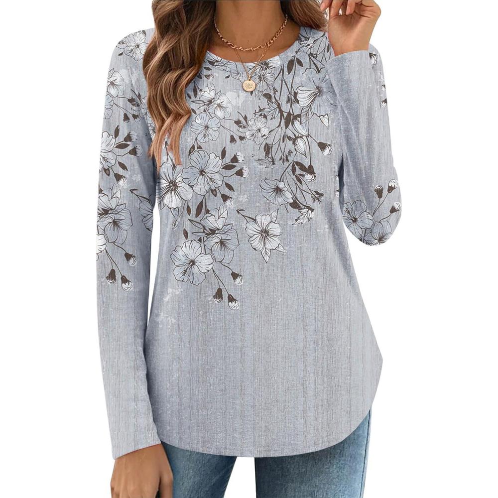 Get the Zeagoo Long Sleeve Shirts for Women Crew Neck Casual Fall Fashion Blouses Basic Tunic Tops Dressy Work Clothes(Grey Print-dh62) you want at a discounted price during our markdown sale event.