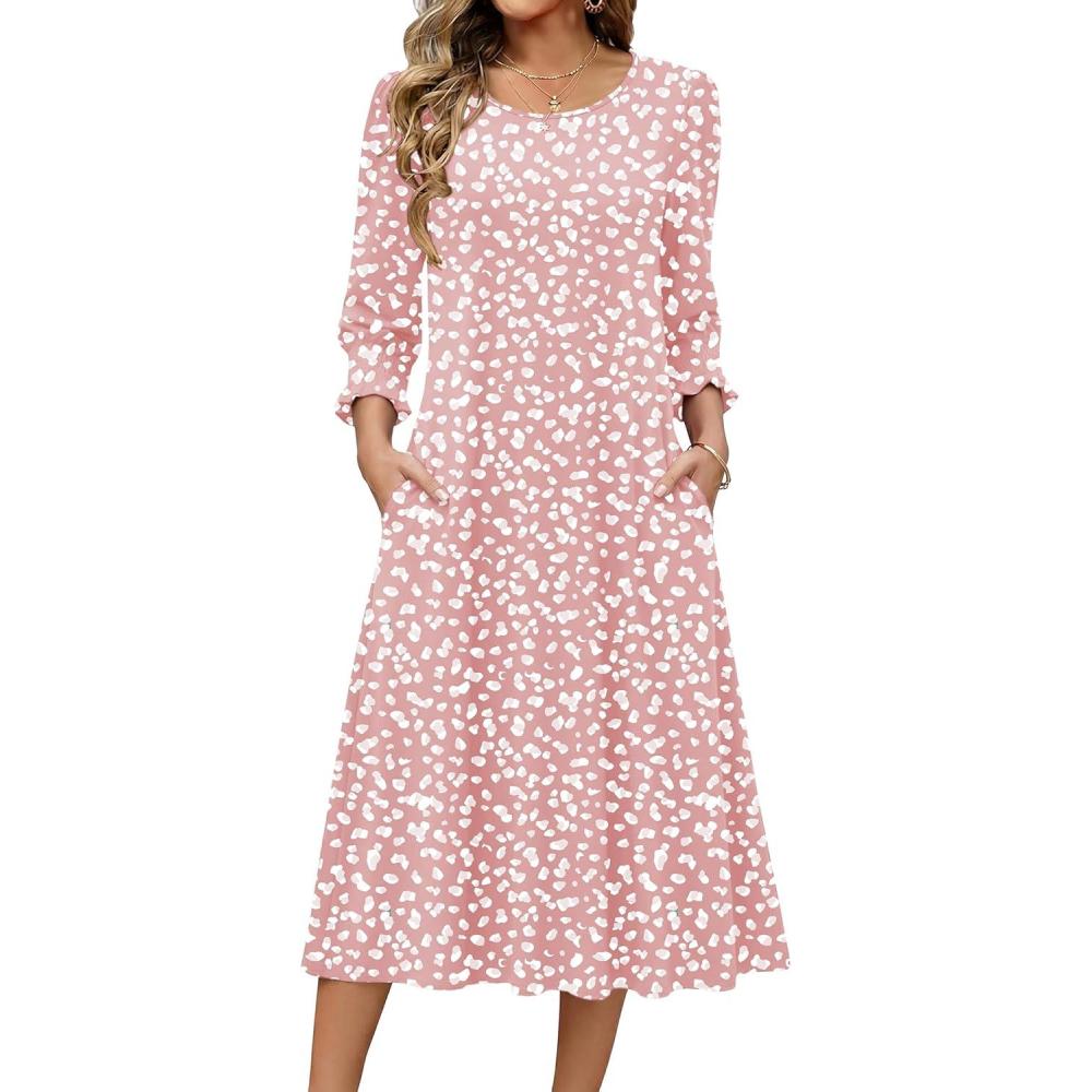 Zeagoo Summer Dresses for Women 2026 3/4 Sleeve Dress for Women Floral Midi Dresses for Casual Womens Dresses with Pockets(Floral-bf290)