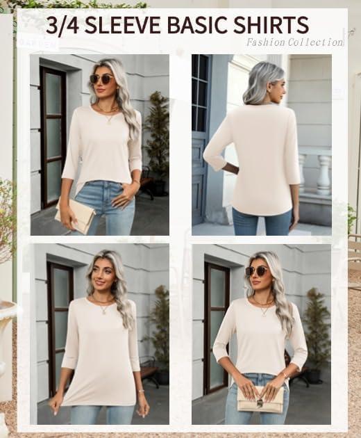 Zeagoo Tops for Women 3 Pack 3/4 Sleeve Crewneck Cute Basics Tees Casual Fashion Summer T Shirts Business Work Tee Top(Black-red-apricot)