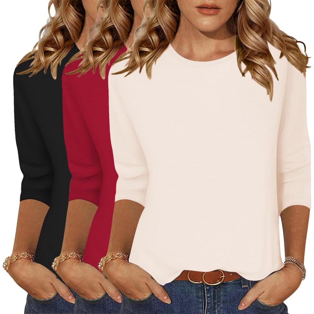 Save big on Zeagoo Tops for Women 3 Pack 3/4 Sleeve Crewneck Cute Basics Tees Casual Fashion Summer T Shirts Business Work Tee Top(Black-red-apricot) and accessories during our BOGO sale. Buy one, get one 50% off!