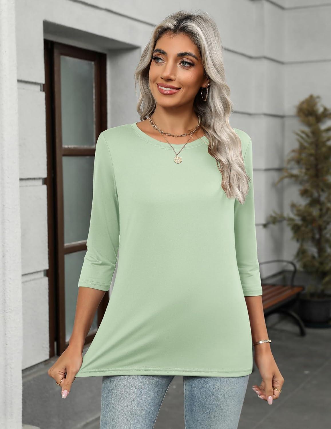 imageZeagoo Tops for Women 3 Pack 34 Sleeve Crewneck Cute Basics Tees Casual Fashion Summer T Shirts Business Work Tee TopBlackwhitearmy Green