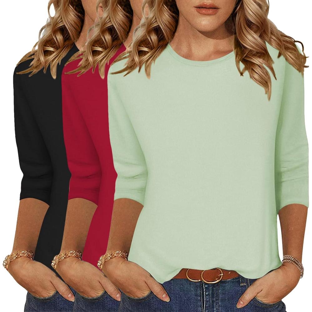 Get up to 50% off on Zeagoo Tops for Women 3 Pack 3/4 Sleeve Crewneck Cute Basics Tees Casual Fashion Summer T Shirts Business Work Tee Top(Black-red-green) styles during our spring sale event.