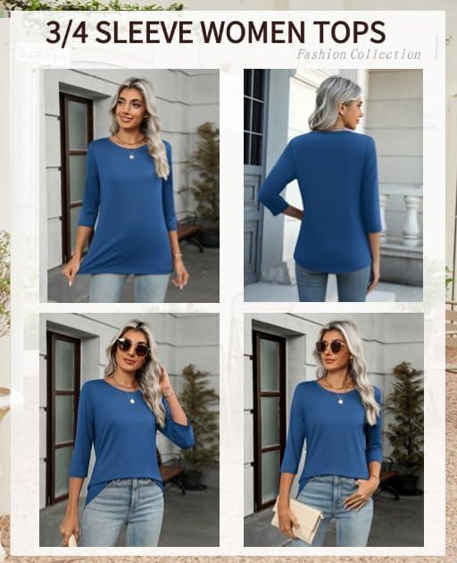 Zeagoo Tops for Women 3 Pack 3/4 Sleeve Crewneck Cute Basics Tees Casual Fashion Summer T Shirts Business Work Tee Top(Black-white-blue)