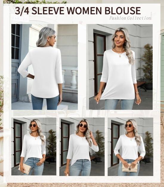 imageZeagoo Tops for Women 3 Pack 34 Sleeve Crewneck Cute Basics Tees Casual Fashion Summer T Shirts Business Work Tee TopBlackwhiteblue