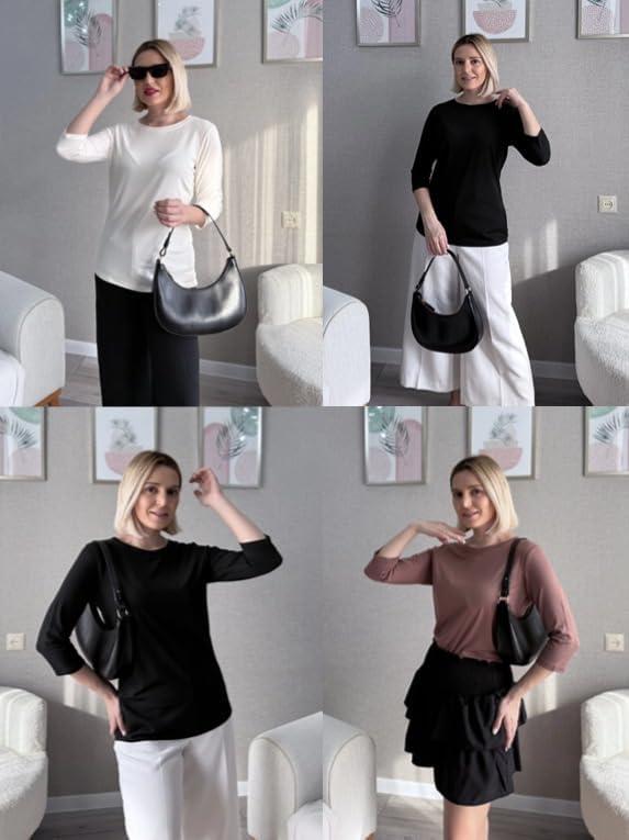imageZeagoo Tops for Women 3 Pack 34 Sleeve Crewneck Cute Basics Tees Casual Fashion Summer T Shirts Business Work Tee TopBlackwhiteboho Mz721