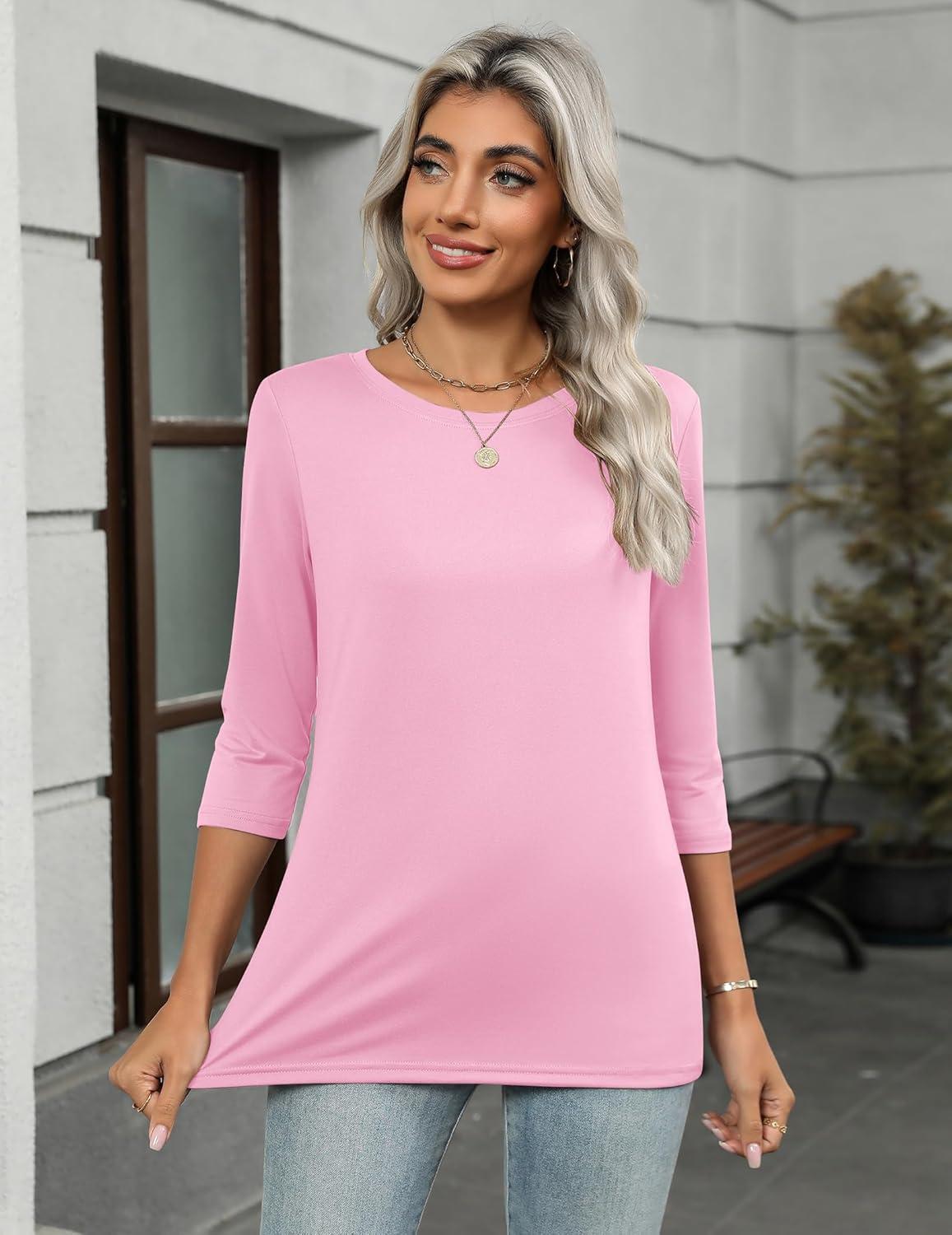 Zeagoo Tops for Women 3 Pack 3/4 Sleeve Crewneck Cute Basics Tees Casual Fashion Summer T Shirts Business Work Tee Top(Black-white-pink)