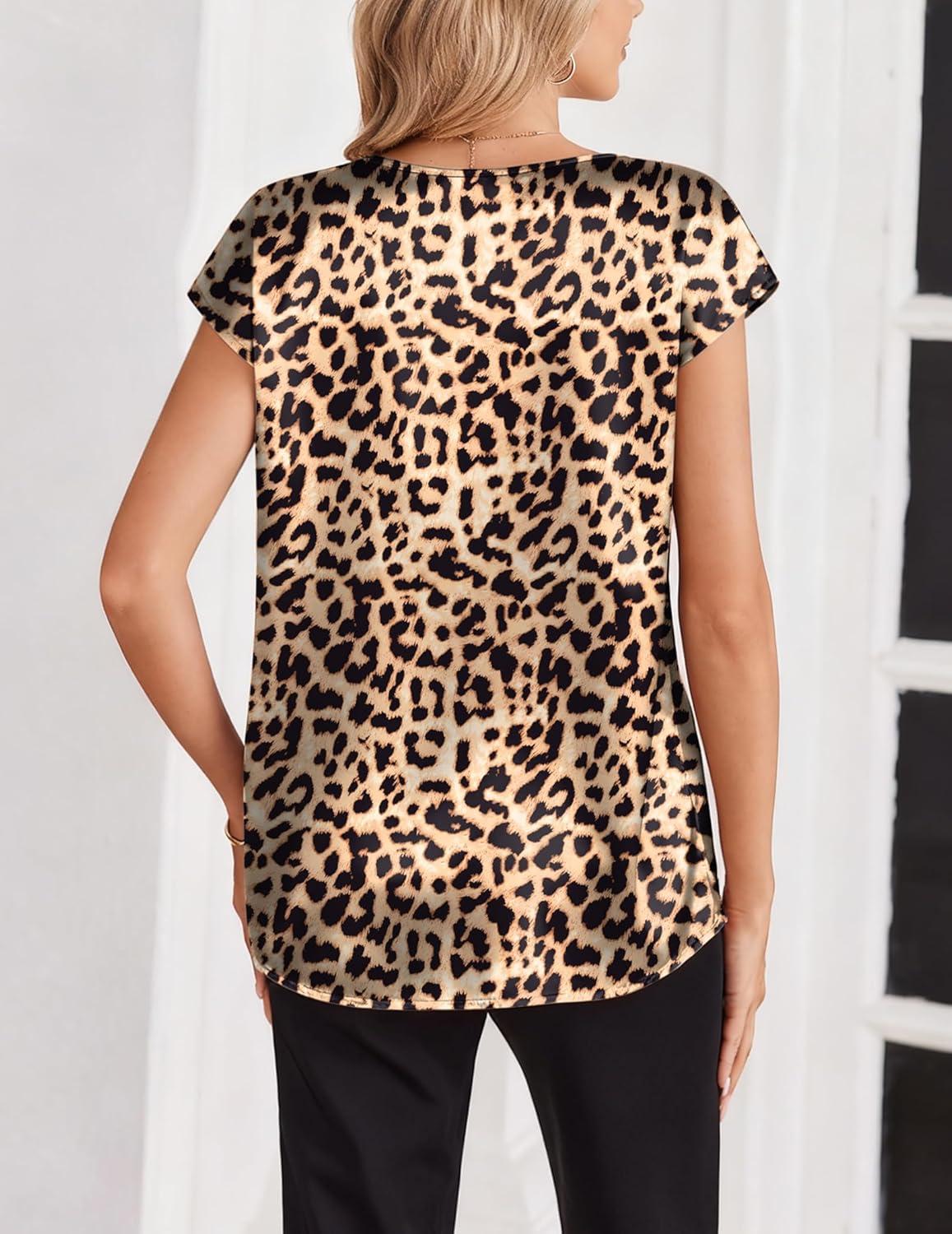 Zeagoo Women Silk Satin Tops Cap Short Sleeve Blouse V Neck Shirts Business Casual Outfits S-2XL(An550)