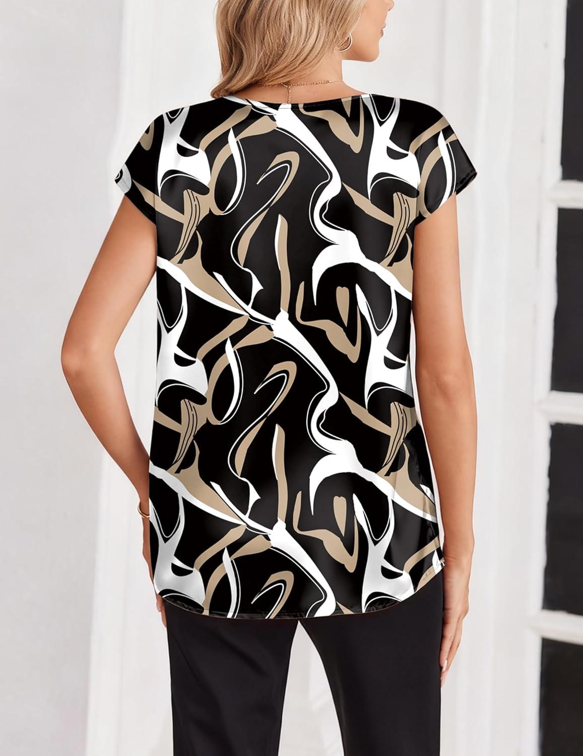Zeagoo Women Silk Satin Tops Cap Short Sleeve Blouse V Neck Shirts Business Casual Outfits S-2XL(Cx312)