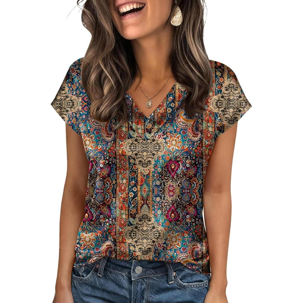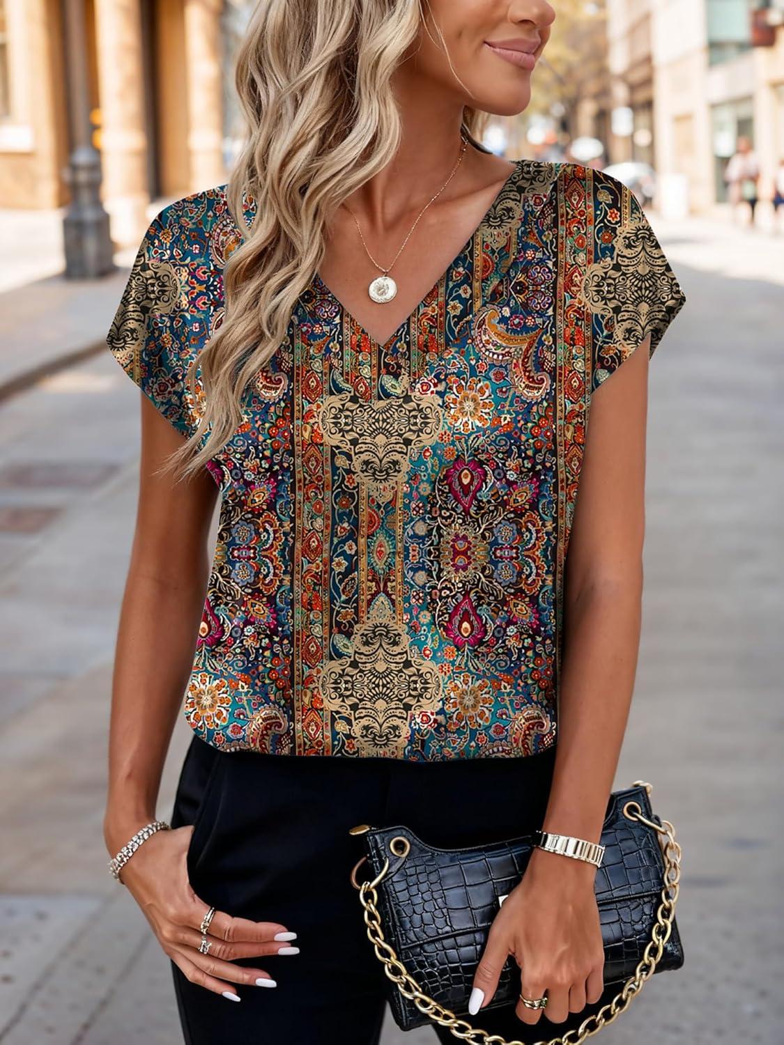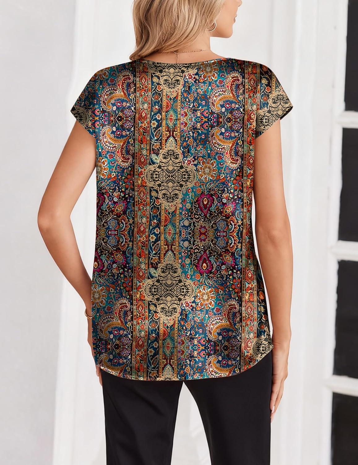 Zeagoo Women Silk Satin Tops Cap Short Sleeve Blouse V Neck Shirts Business Casual Outfits S-2XL(Mz721)