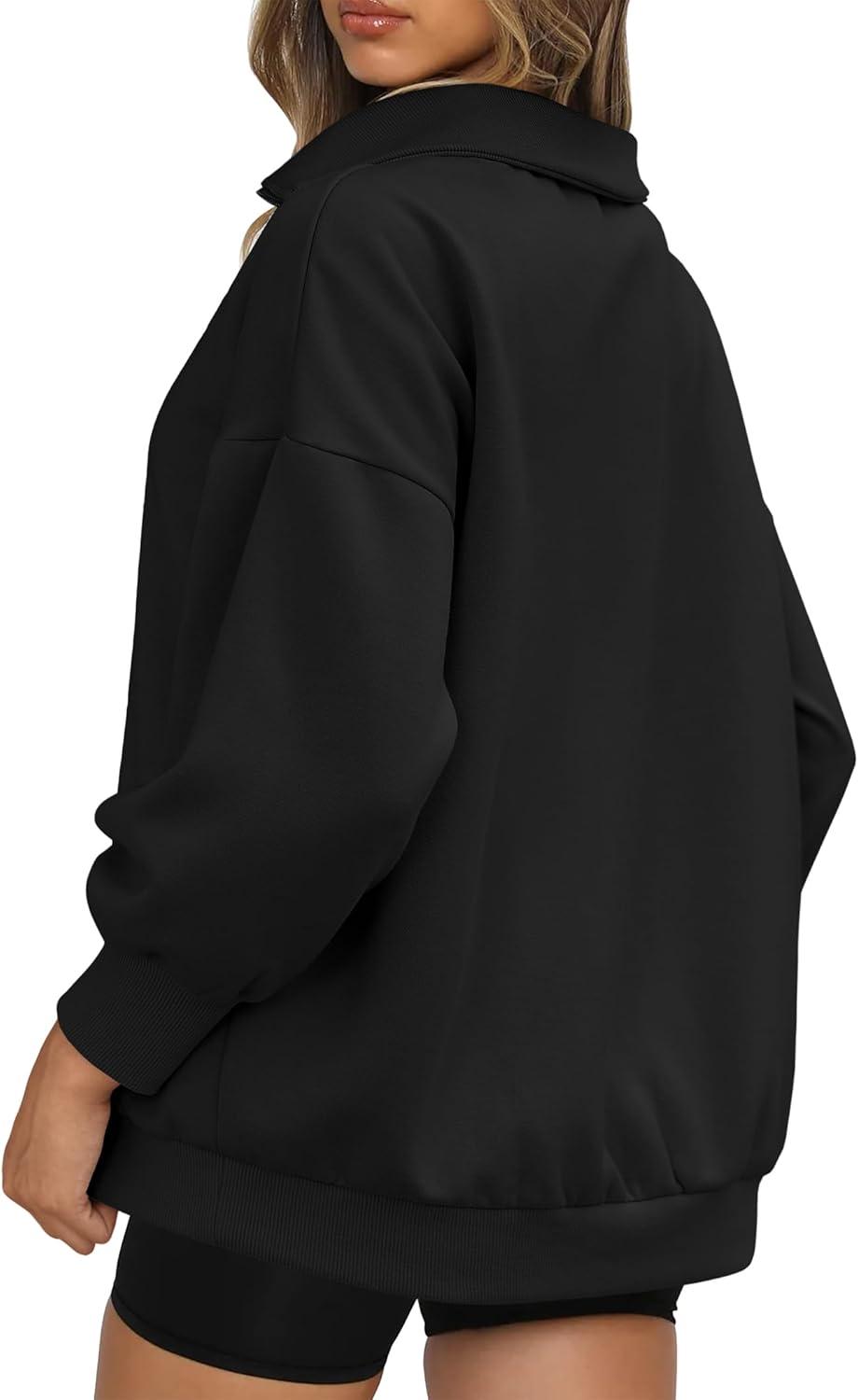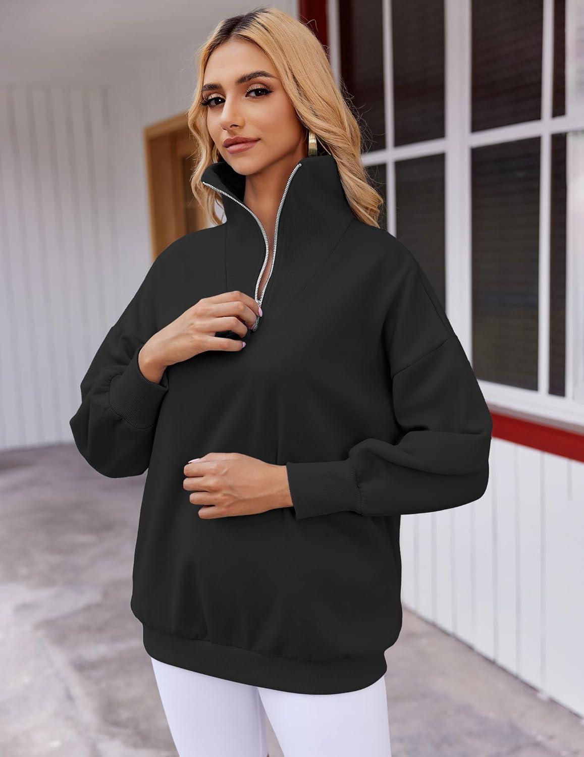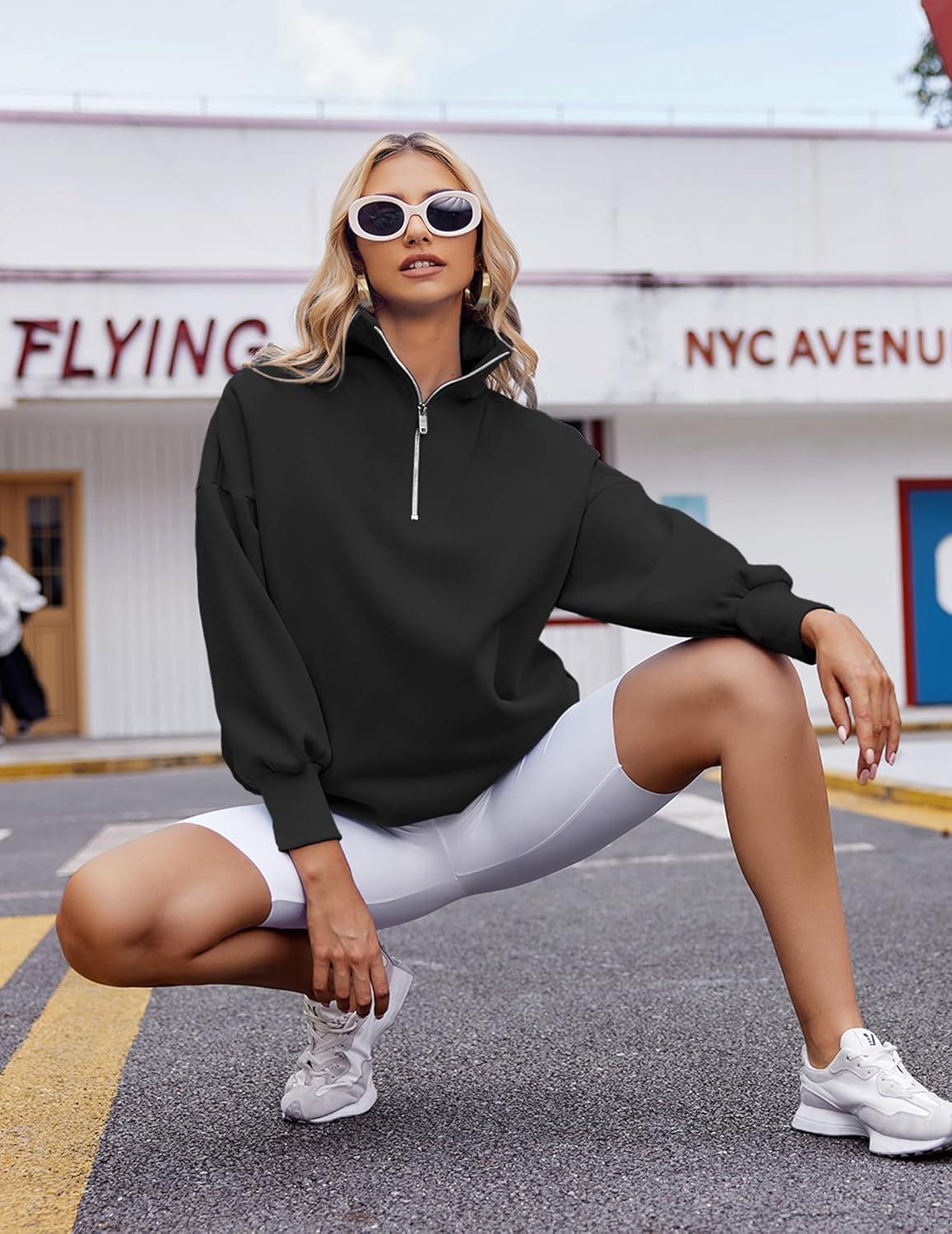 Long Sleeve Workout Tops For Women/Solid Color/Quarter Zipper Sweatshirt/Ribbed Cuffs And Hem/Fleece Lined/Side Pocket/Dropped Shoulder/Loose Fit Style/Cropped Hoodie/Casual Tops For Women/Tunic Sweatshirts For Women/Gym Yoga Clothing