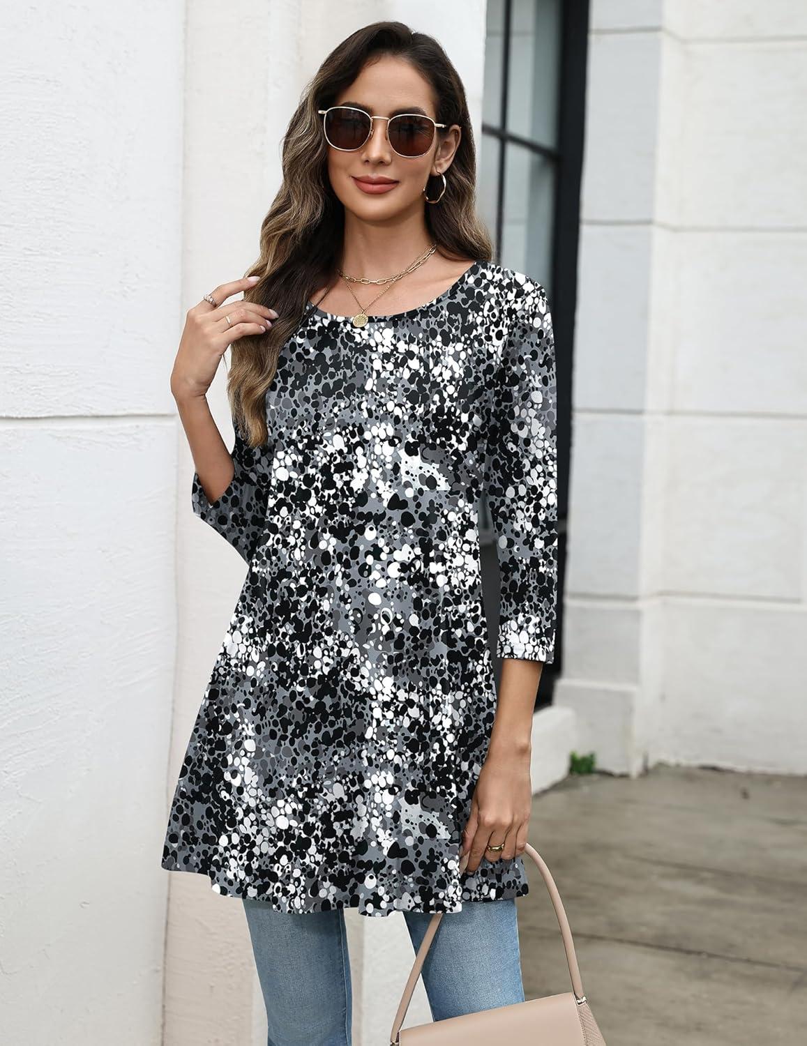 Zeagoo Women Tops 3/4 Sleeve Dressy Casual Plus Size Tunics to Wear with Leggings Swing Flare T-Shirt Loose Blouses S-3XL(Multicolor-cx289)