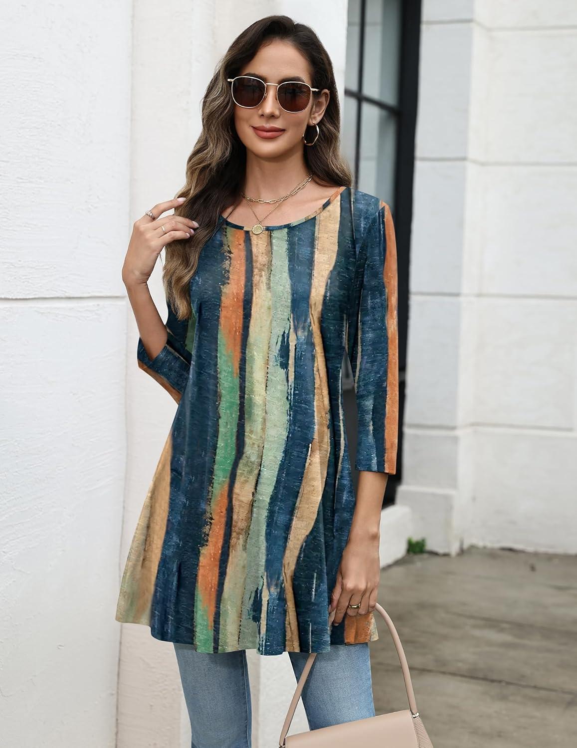 Zeagoo Women Tops 3/4 Sleeve Dressy Casual Plus Size Tunics to Wear with Leggings Swing Flare T-Shirt Loose Blouses S-3XL(Multicolor-cx289)
