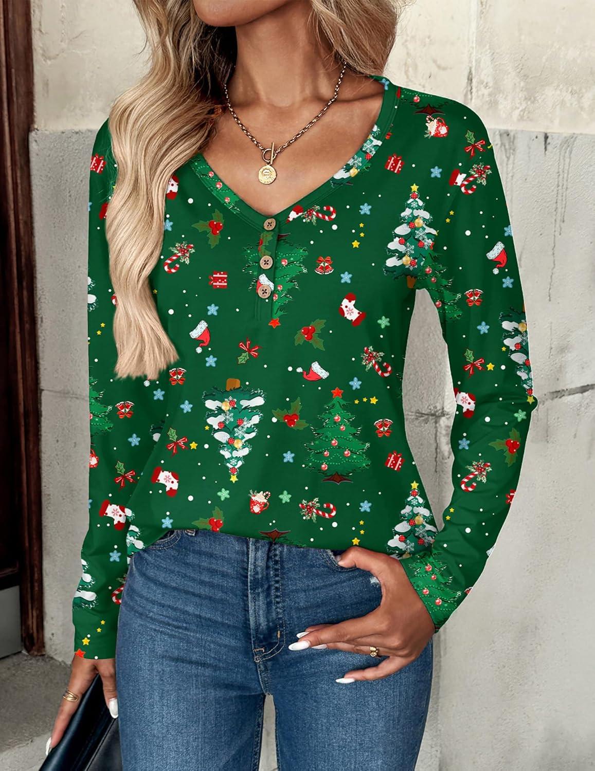 Zeagoo Women Tops Loose Fit Long Sleeve V Neck T Shirts Business Casual Blouses Dressy Fall Fashion Work Clothes(Green-sd477)