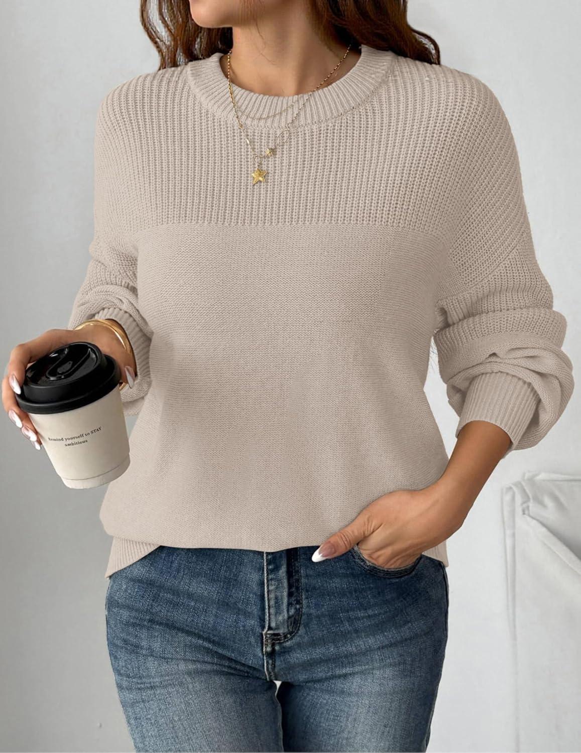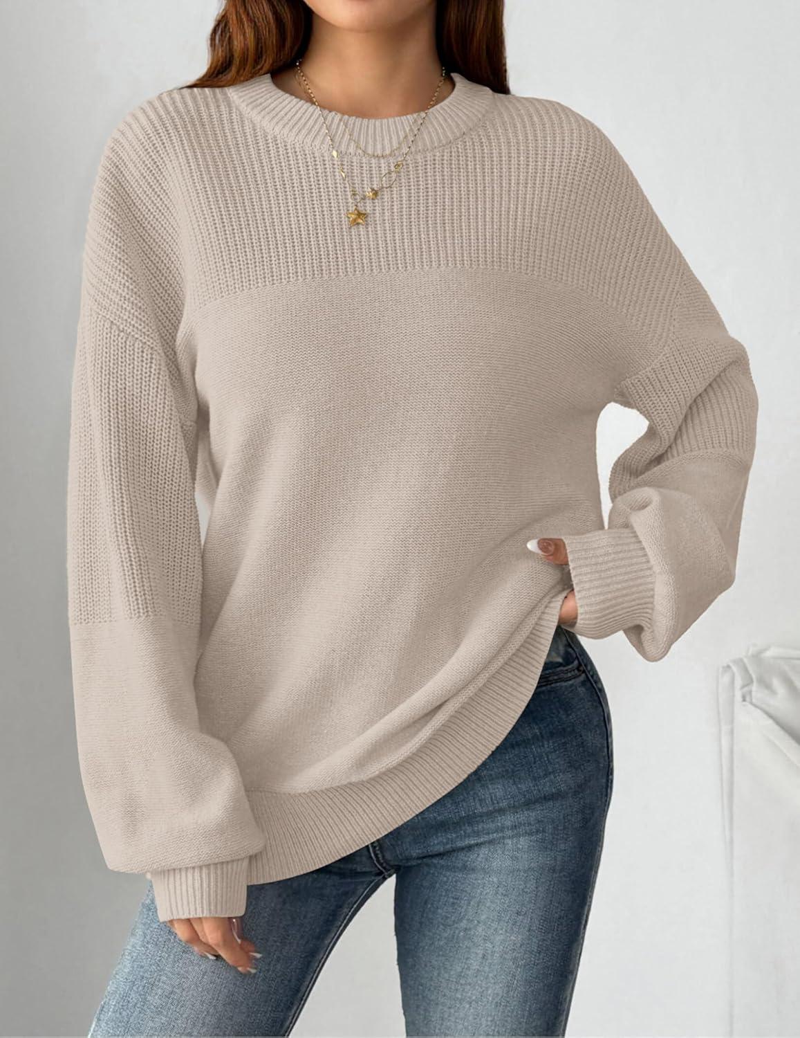 Zeagoo Women’s 2025 Fall Chunky Knit Sweater Oversized Crewneck Long Sleeve Winter Cotton Pullover Sweaters Jumper Tops(Beige)
