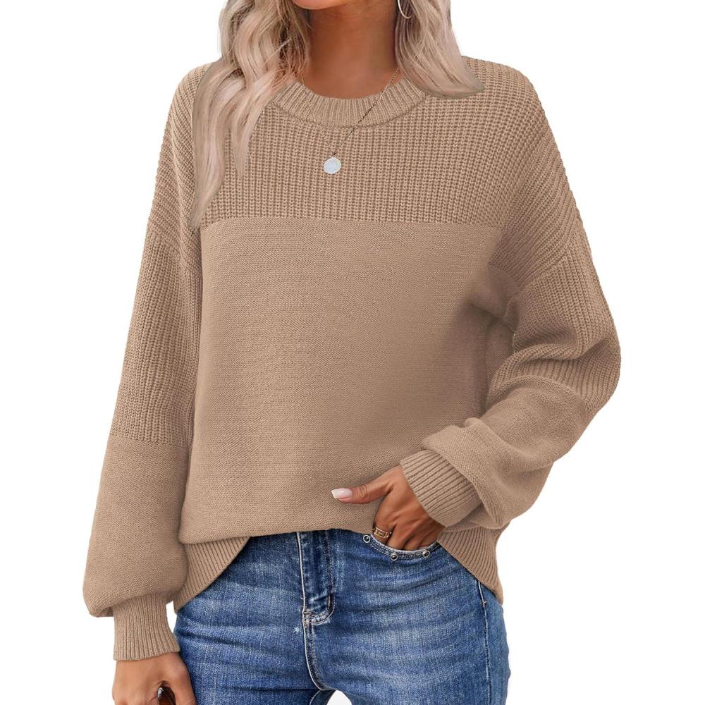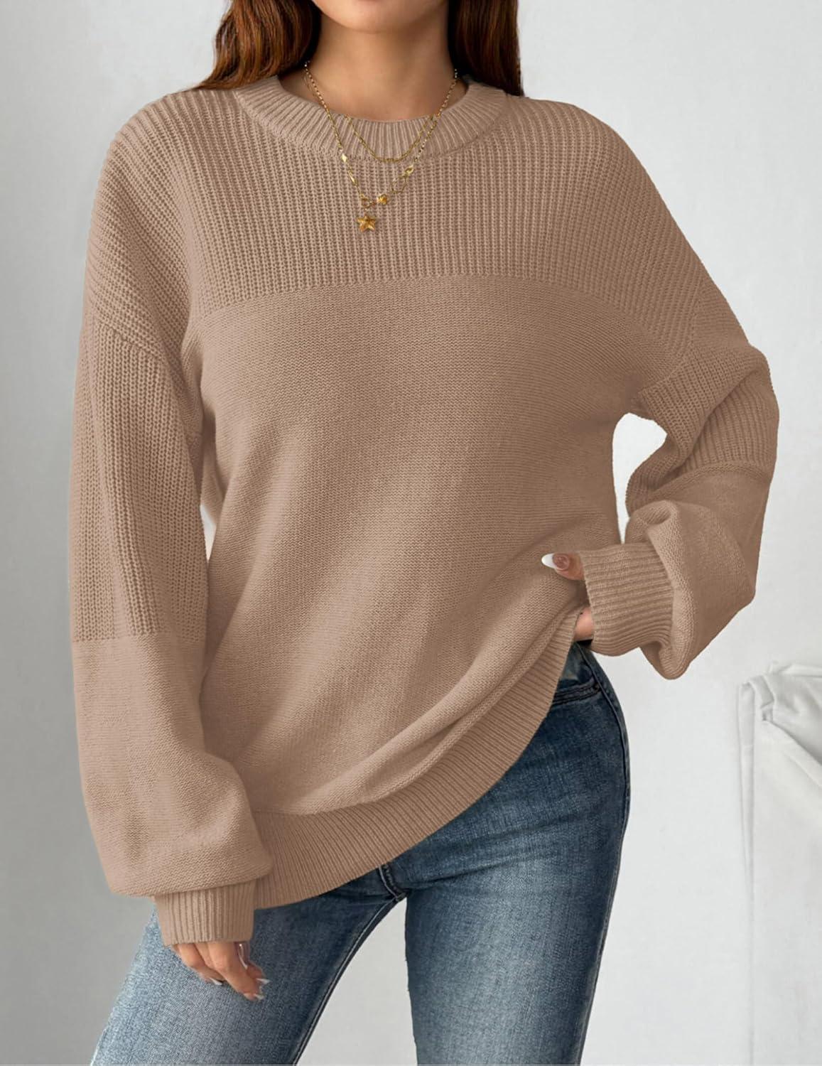Zeagoo Women’s 2025 Fall Chunky Knit Sweater Oversized Crewneck Long Sleeve Winter Cotton Pullover Sweaters Jumper Tops(Khaki)