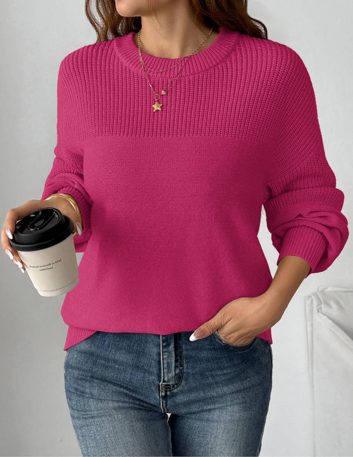 Zeagoo Women’s 2025 Fall Chunky Knit Sweater Oversized Crewneck Long Sleeve Winter Cotton Pullover Sweaters Jumper Tops(Rose)