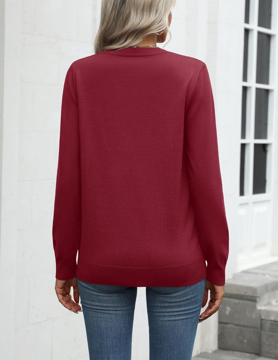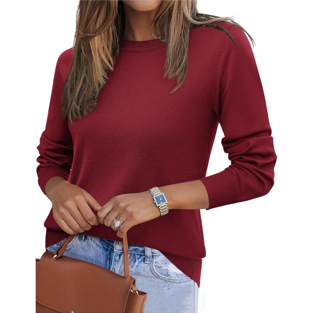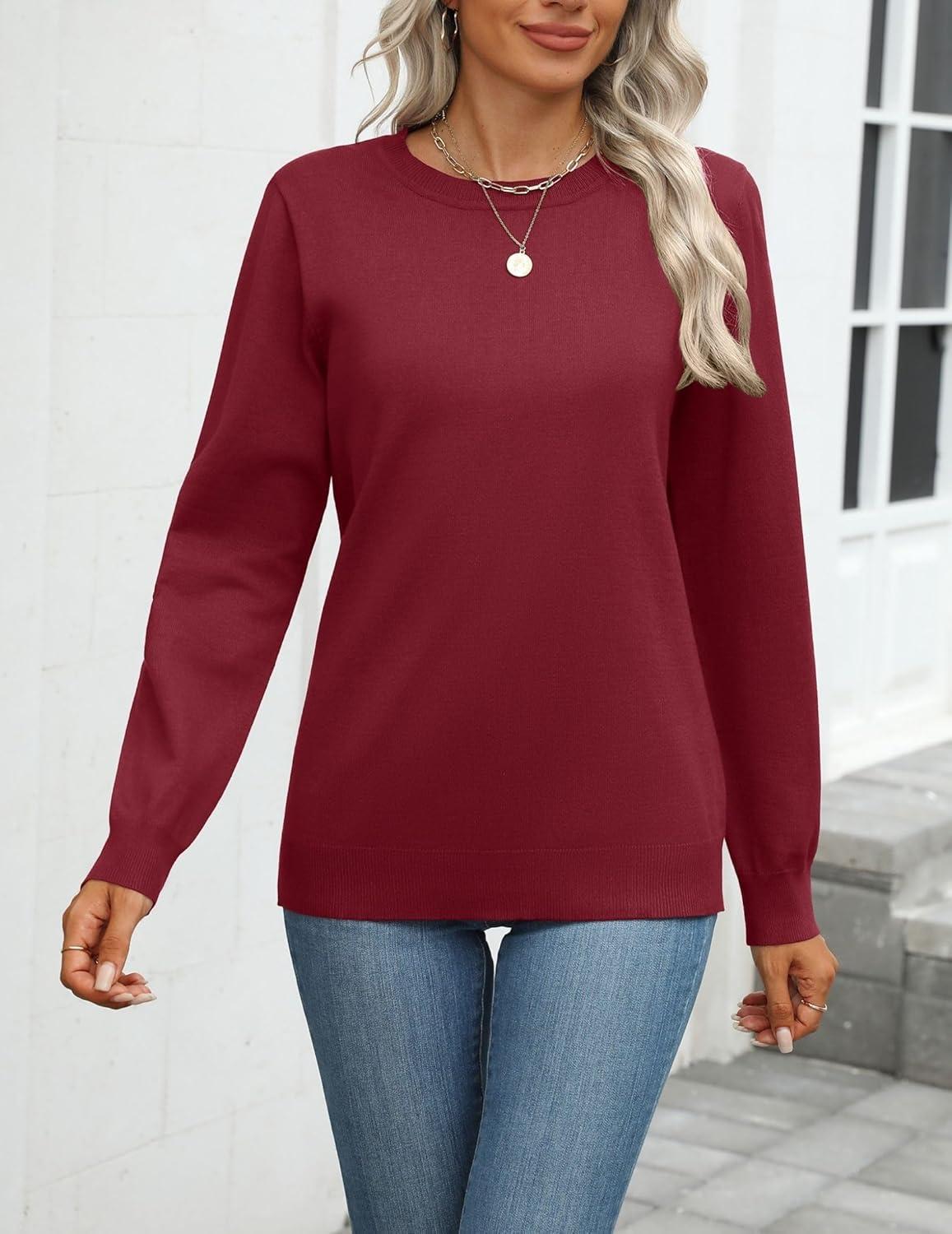 Zeagoo Womens 2025 Fall Sweaters Long Sleeve Tops Classic Crew Neck Pullover Sweaters Loose Dressy Casual Basic Clothes(Wine Red)