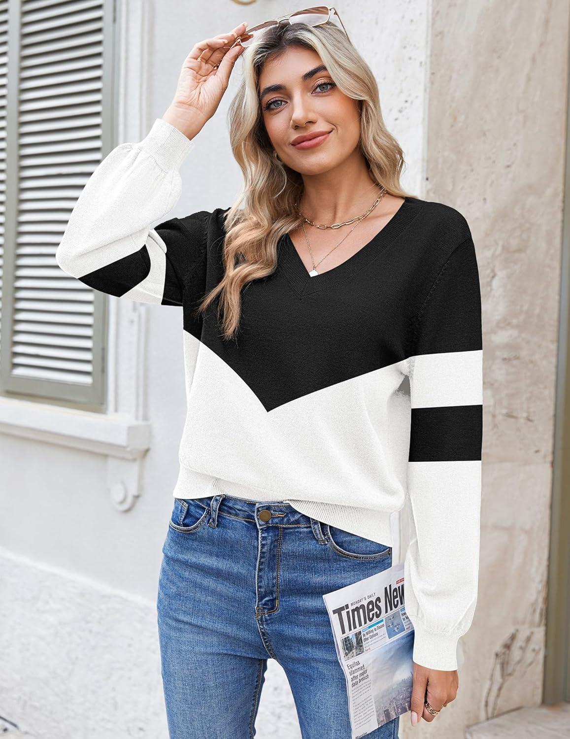 Save up to 40% on Zeagoo Women’s 2025 Fall V-Neck Cropped Sweater Trendy Long Latern Sleeve Ribbed Knit Pullover Crop Tops(Black White) styles during our end-of-season sale.