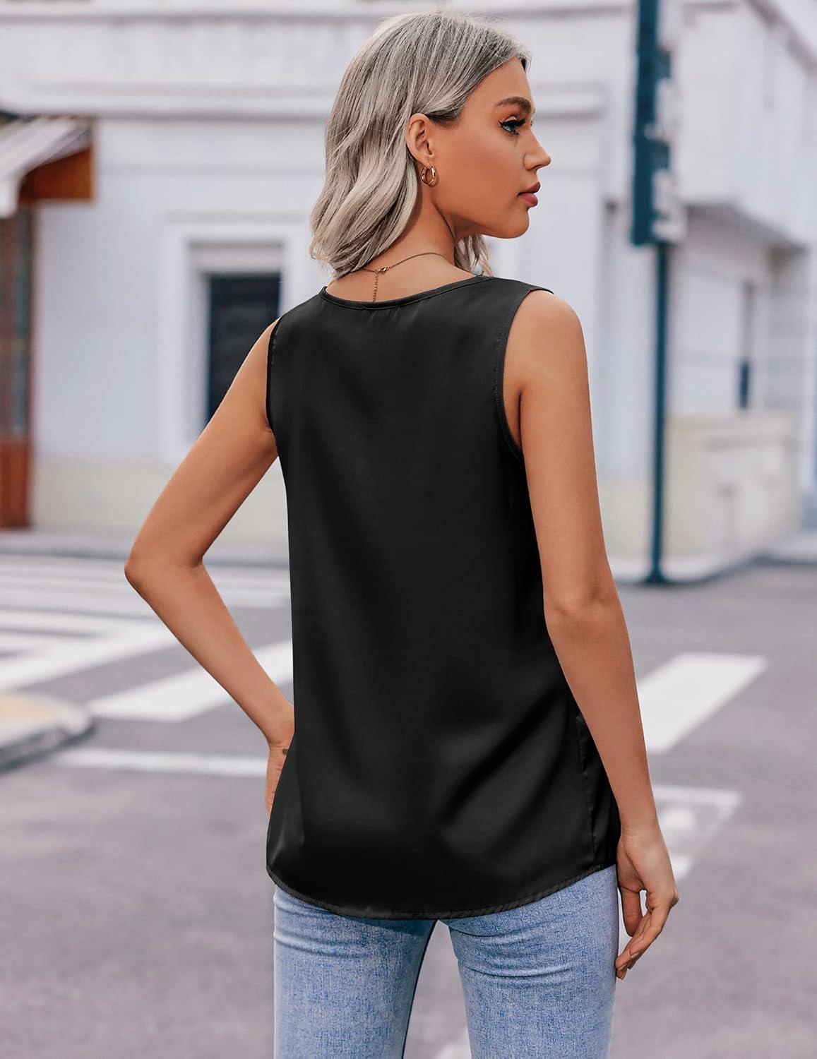Zeagoo 2024 Womens Silk Satin Sleeveless Tank Top Lace Trim Blouser
