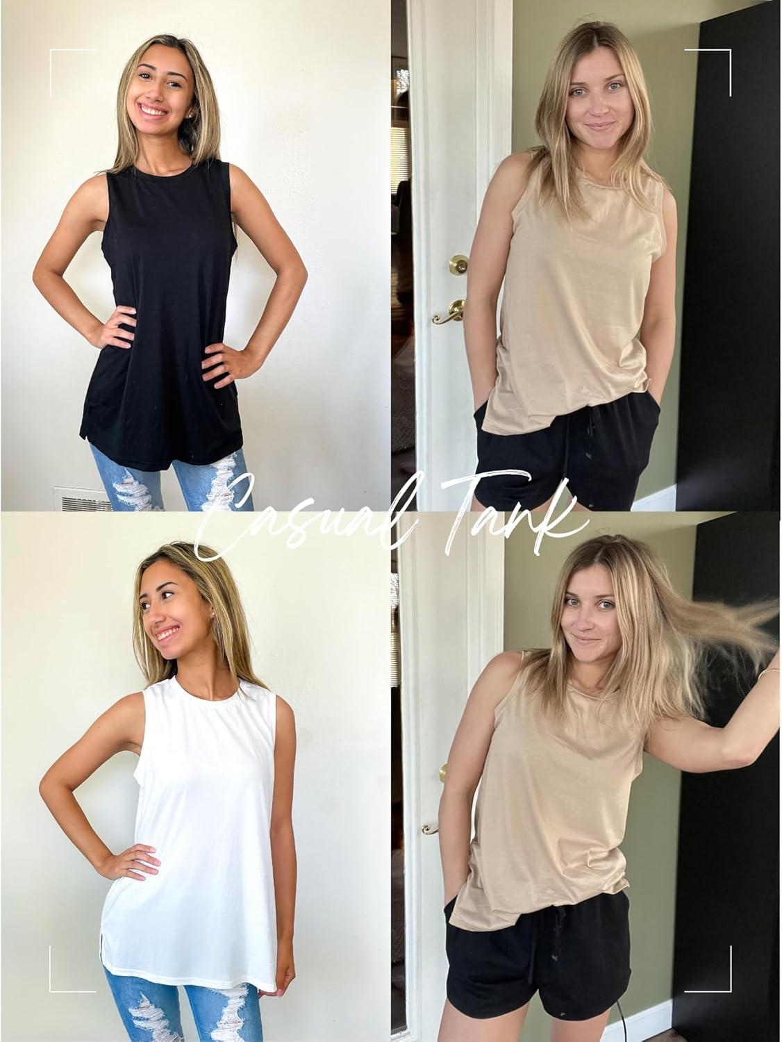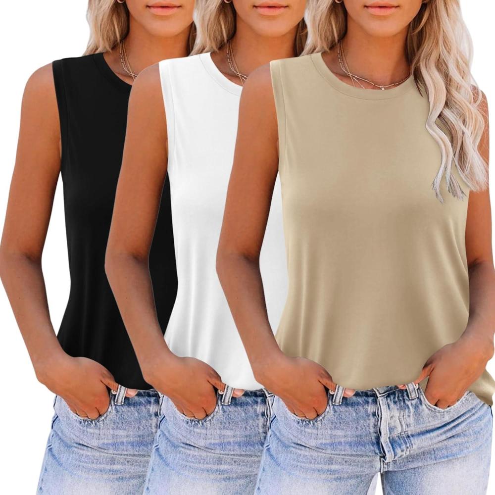 Zeagoo Womens 2025 Tank Tops Casual Crewneck Sleeveless T Shirts Loose Fit Summer Tunic Blouse(Khaki White Black)