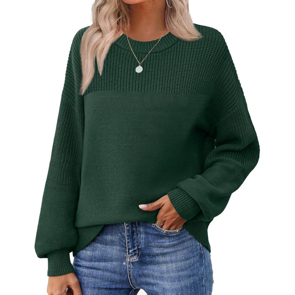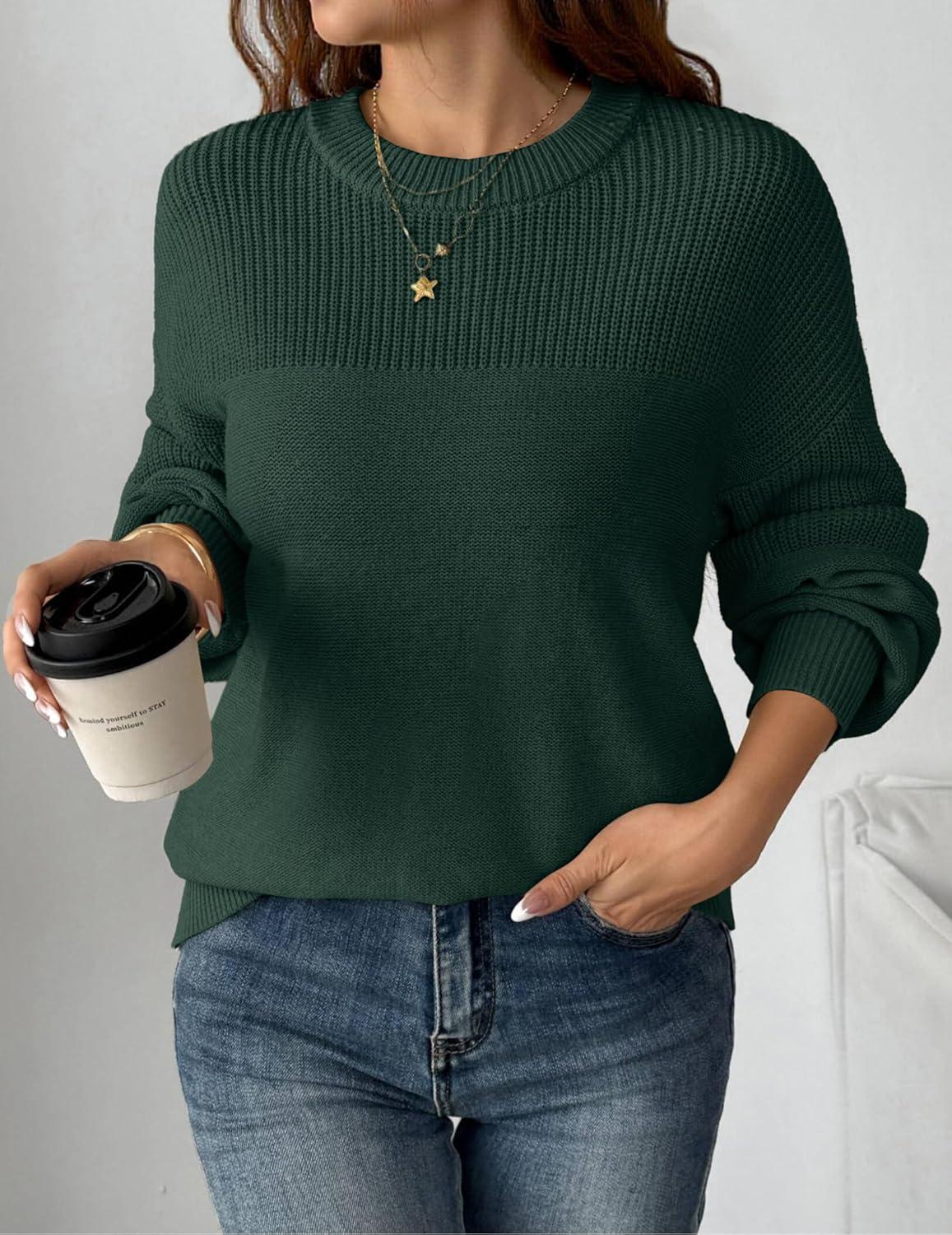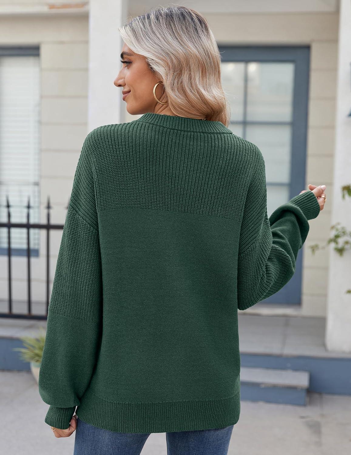 Zeagoo Women’s 2026 Fall Chunky Knit Sweater Oversized Crewneck Long Sleeve Winter Cotton Pullover Sweaters Jumper Tops(Green)