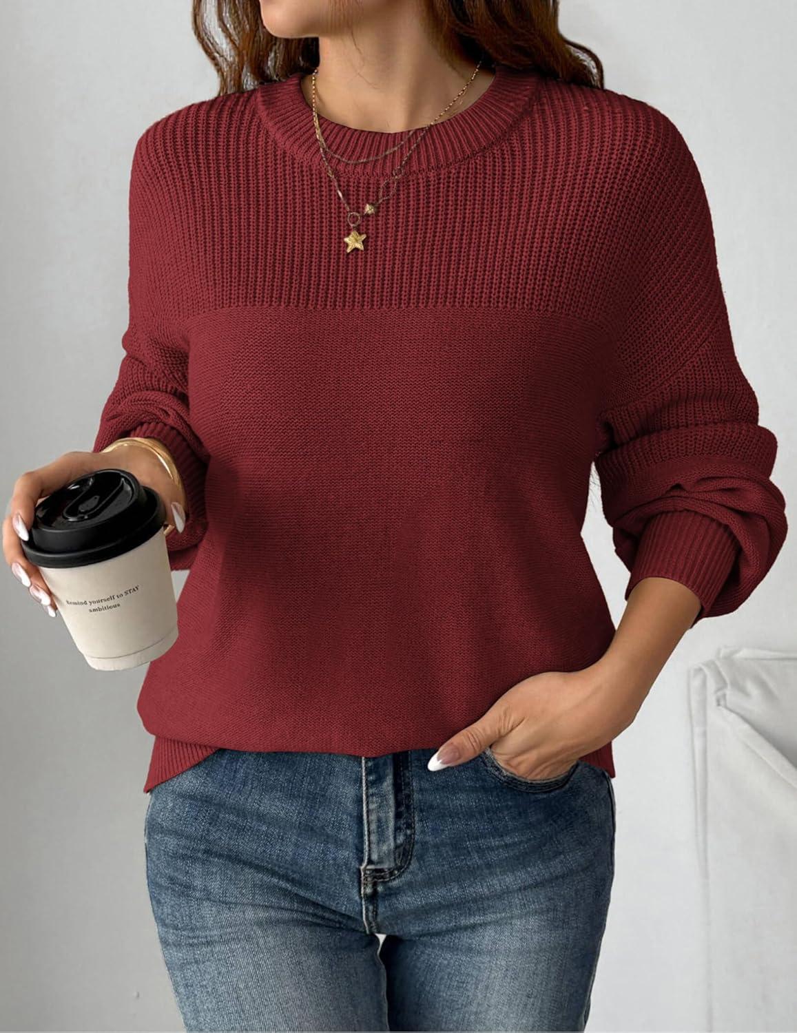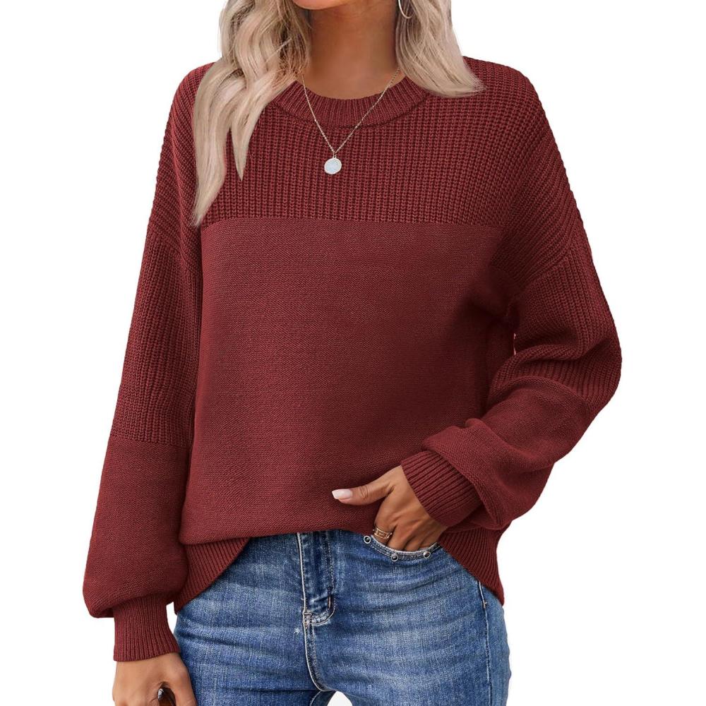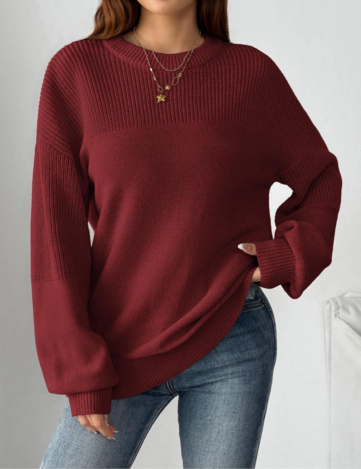 Zeagoo Women’s 2026 Fall Chunky Knit Sweater Oversized Crewneck Long Sleeve Winter Cotton Pullover Sweaters Jumper Tops(Wine Red)